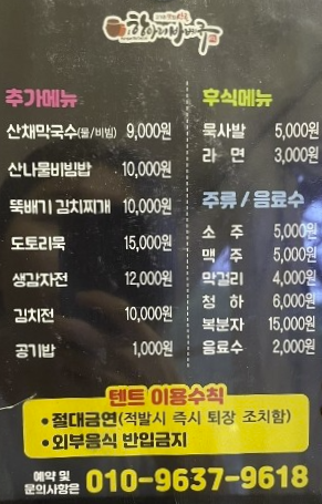 저는 가족식사 할거라 텐트자리 예약을 미리 해뒀었어요.
