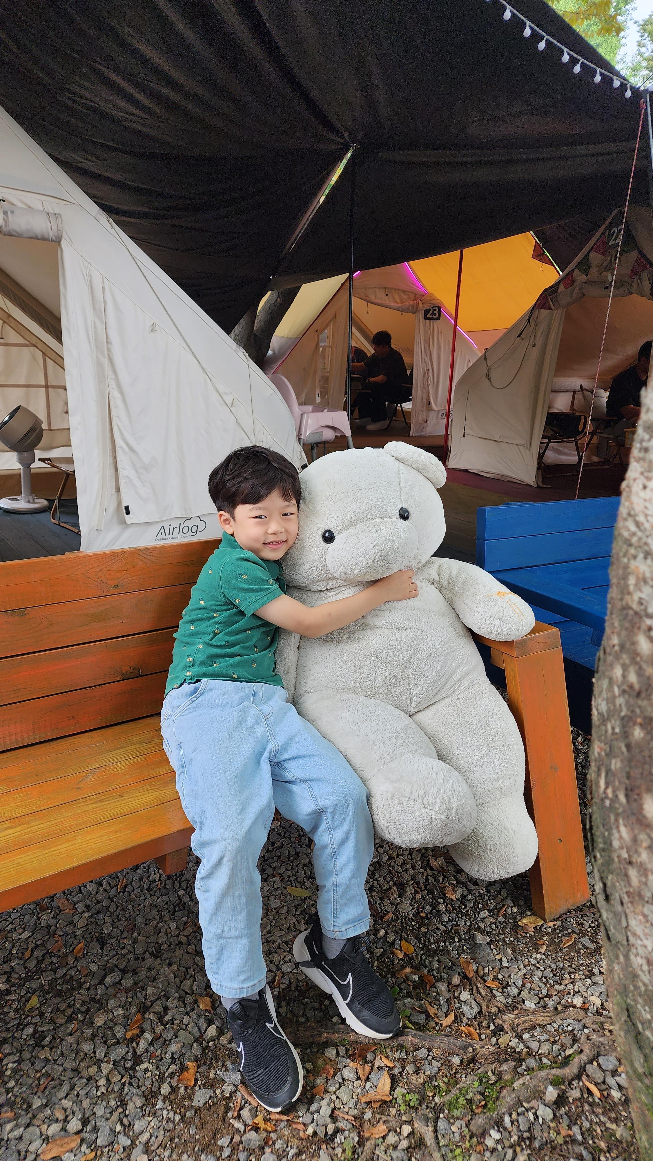 곰돌이가 꼬질꼬질해서 껴안지는 말았으면.. 했는데 동글이는 귀엽다고 끌어 안아서 식겁했어요.(애미는 당황)