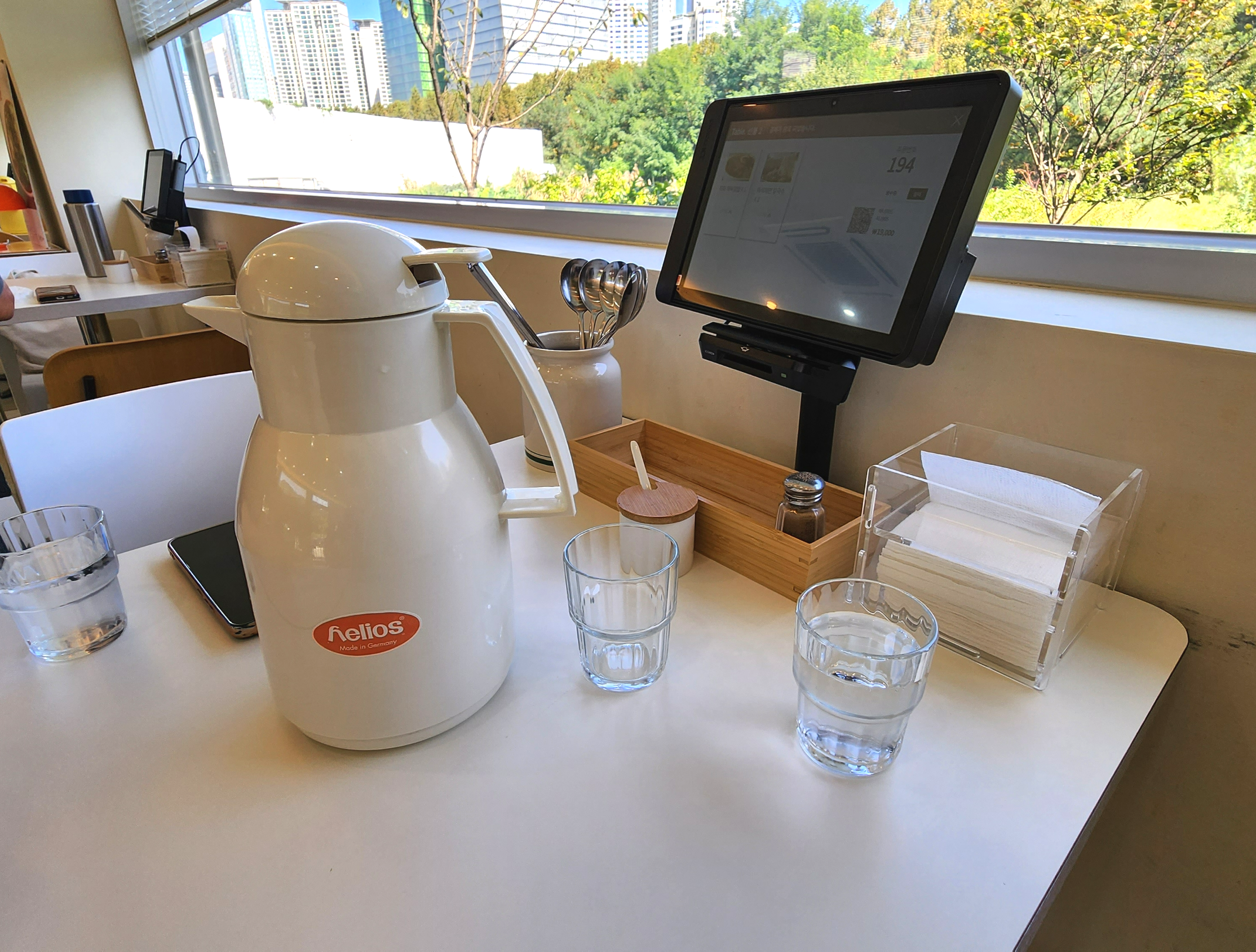 물병, 컵, 수저, 젓가락, 냅킨, 후추 등이 있었어요.