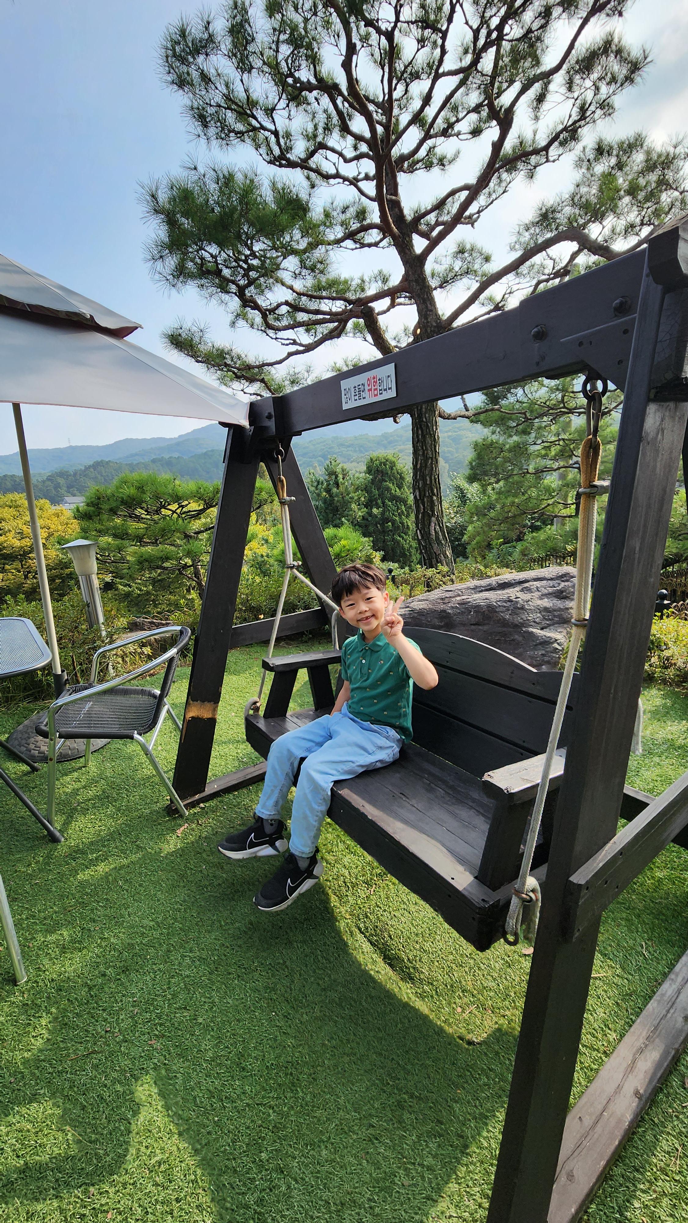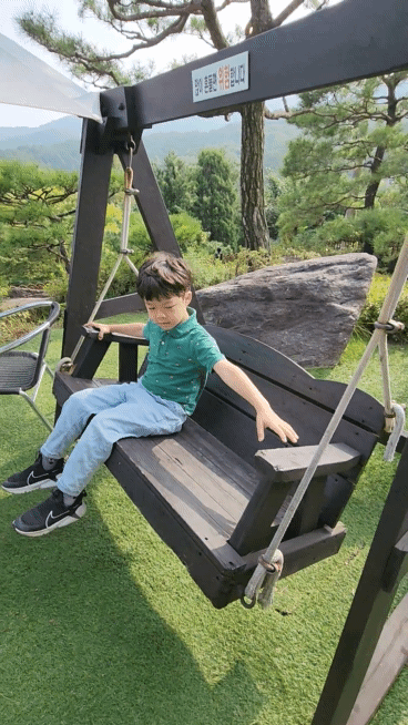 동글이는 정원에 있는 그네가 좋았다면서 요래요래 타봤네요.