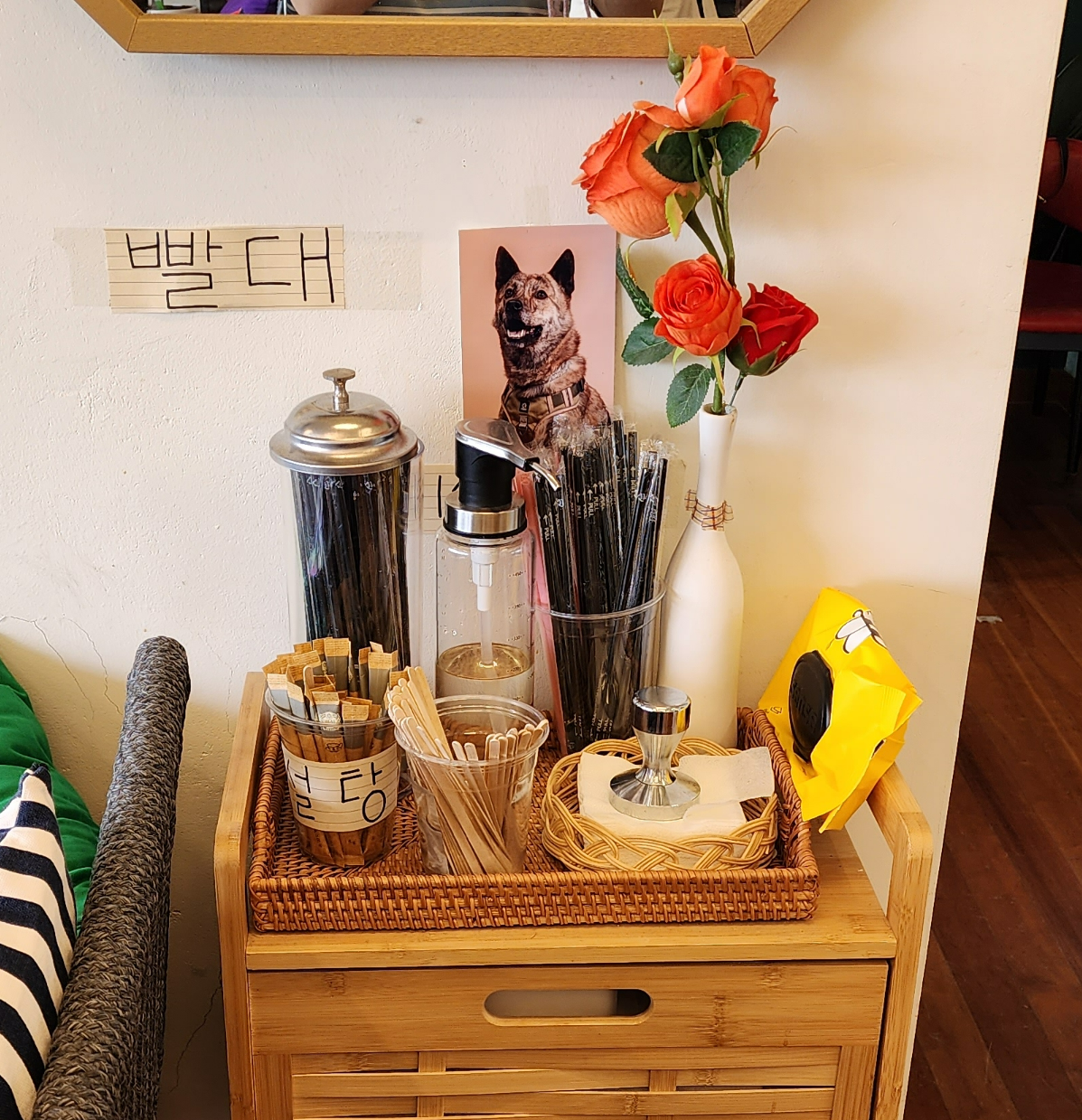 서비스코너에 설탕, 스틱, 빨대, 냅킨등이 있었고, 유아의자도 마련되어있어 어린 아이 동반하시는 분들은 참고하시면 좋을 것 같아요.