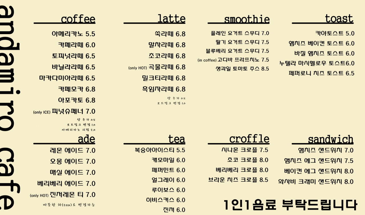 음료 가격은 사진을 깜박해서 네이버 점포 정보에서 가져왔어요.