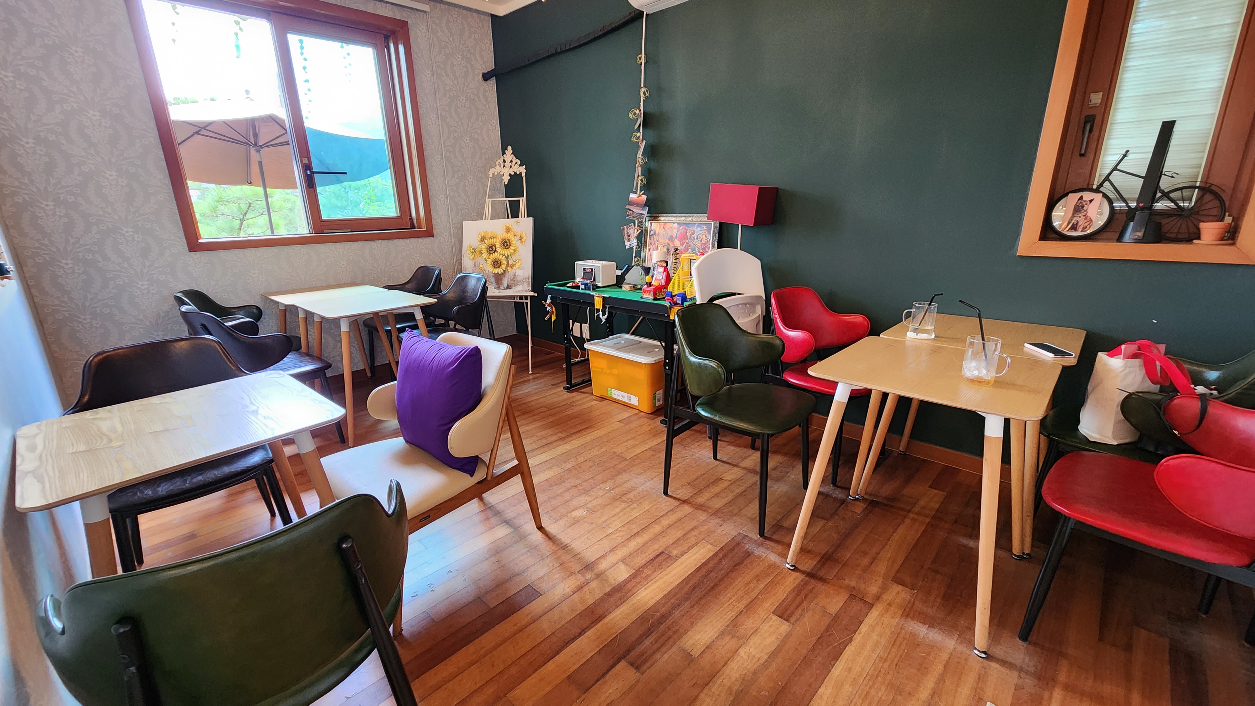 안쪽에 정말 다양한 의자와 테이블이 있고 넓은 편이라서 여럿이서 가도 문제 없겠더군요.