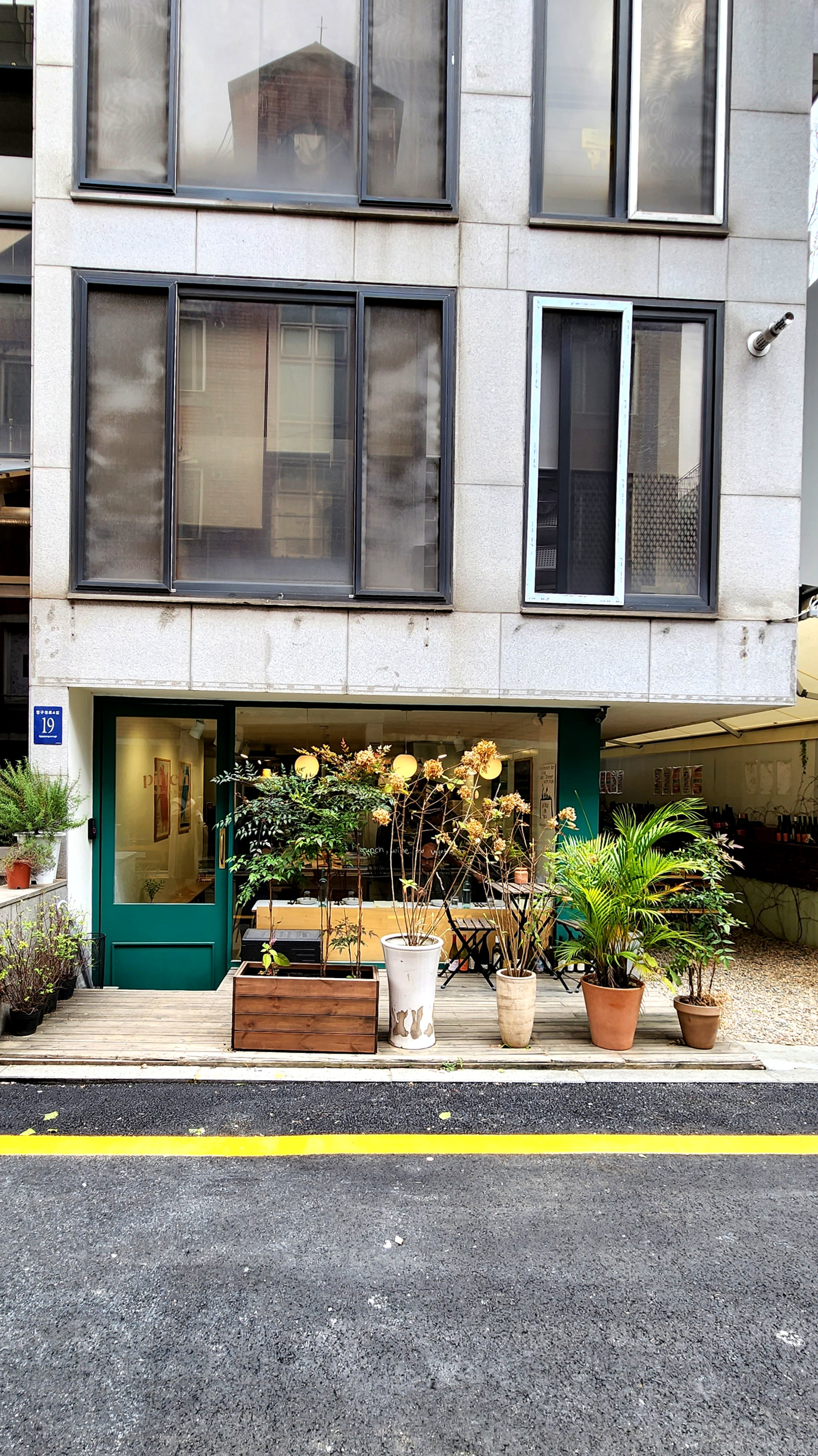 커다란 간판이 없고, 레스토랑 앞에 화분이 여러개 놓여있었거든요.