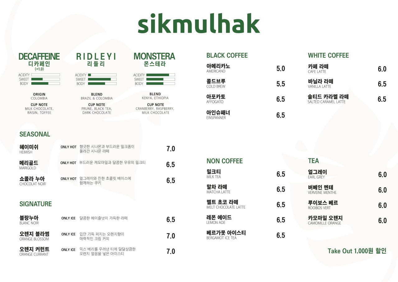 제가 찍어온 사진이 흔들려서 네이버 지도에 올려진 메뉴 가져왔어요.