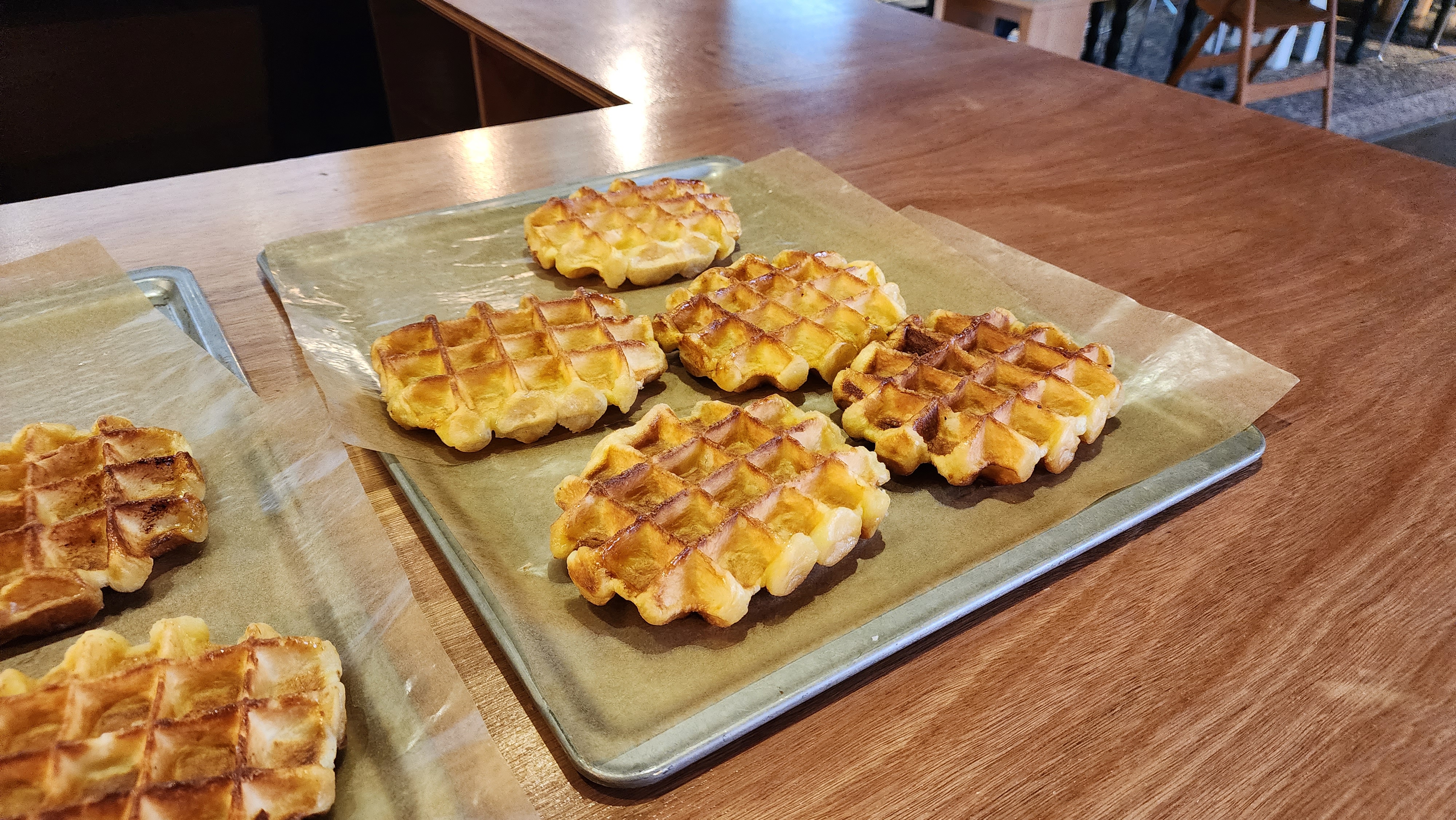 휘낭시에와 와플을 구워서 판매중이었어요.