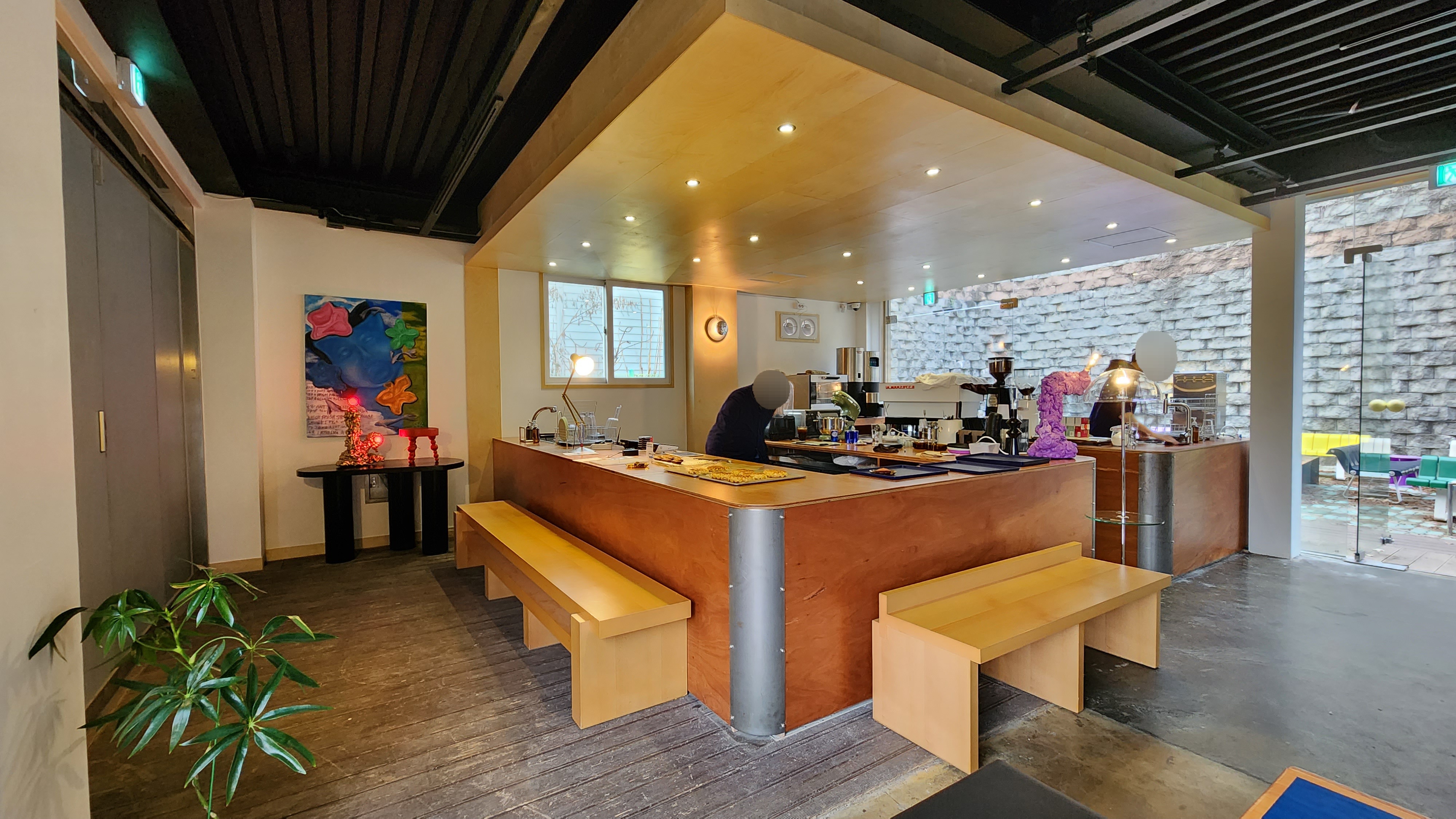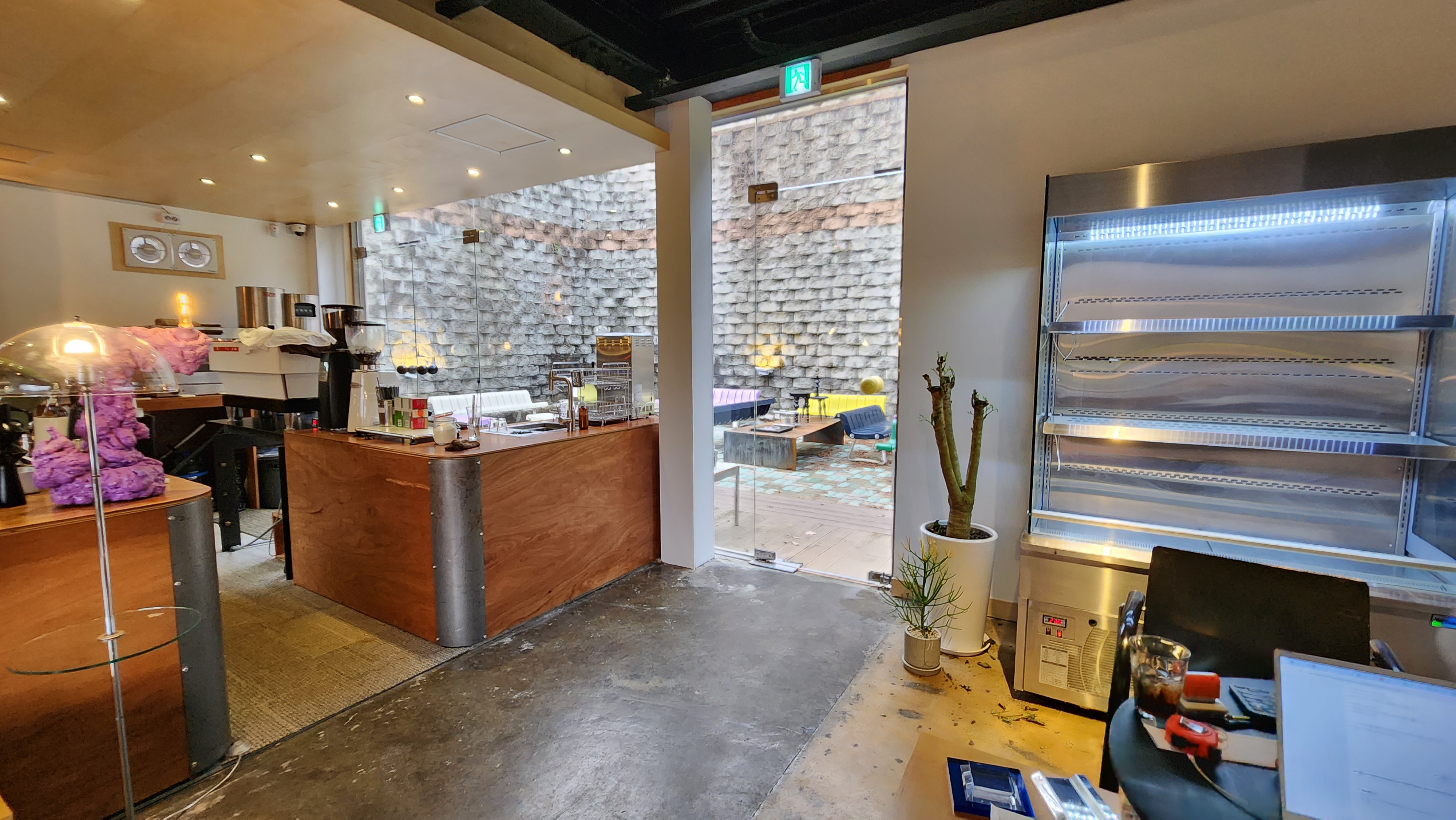 카운터 뒷편에 출입구가 하나 더 있는데 야외 테라스와 2층으로 이어져요.