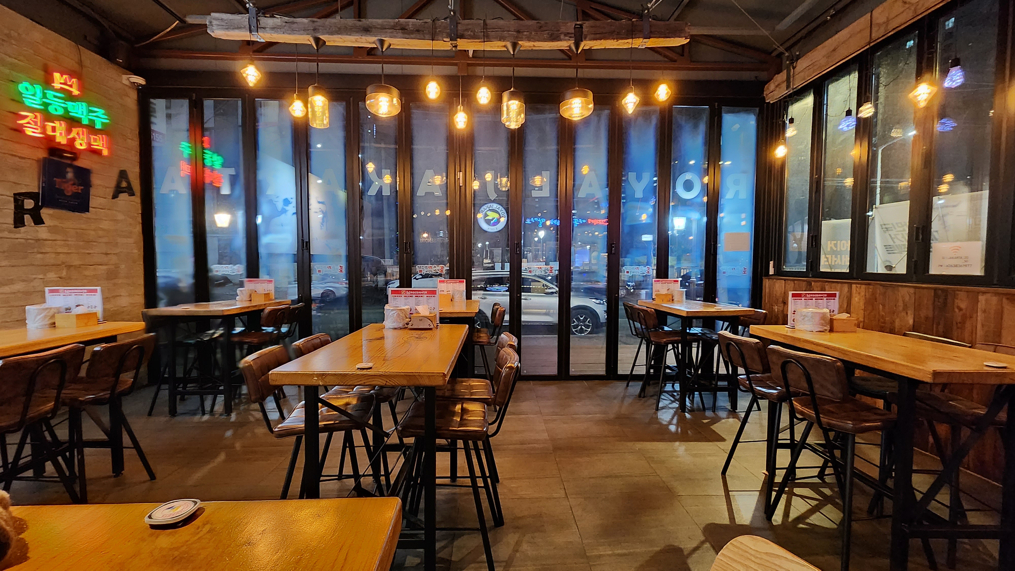 '그대여 아무 걱정 하지 말아요' 네온싸인이 7080 갬성 돋지만 조명도 귀엽고 무엇보다도 테이블 간격 넓어서 좋았어요.