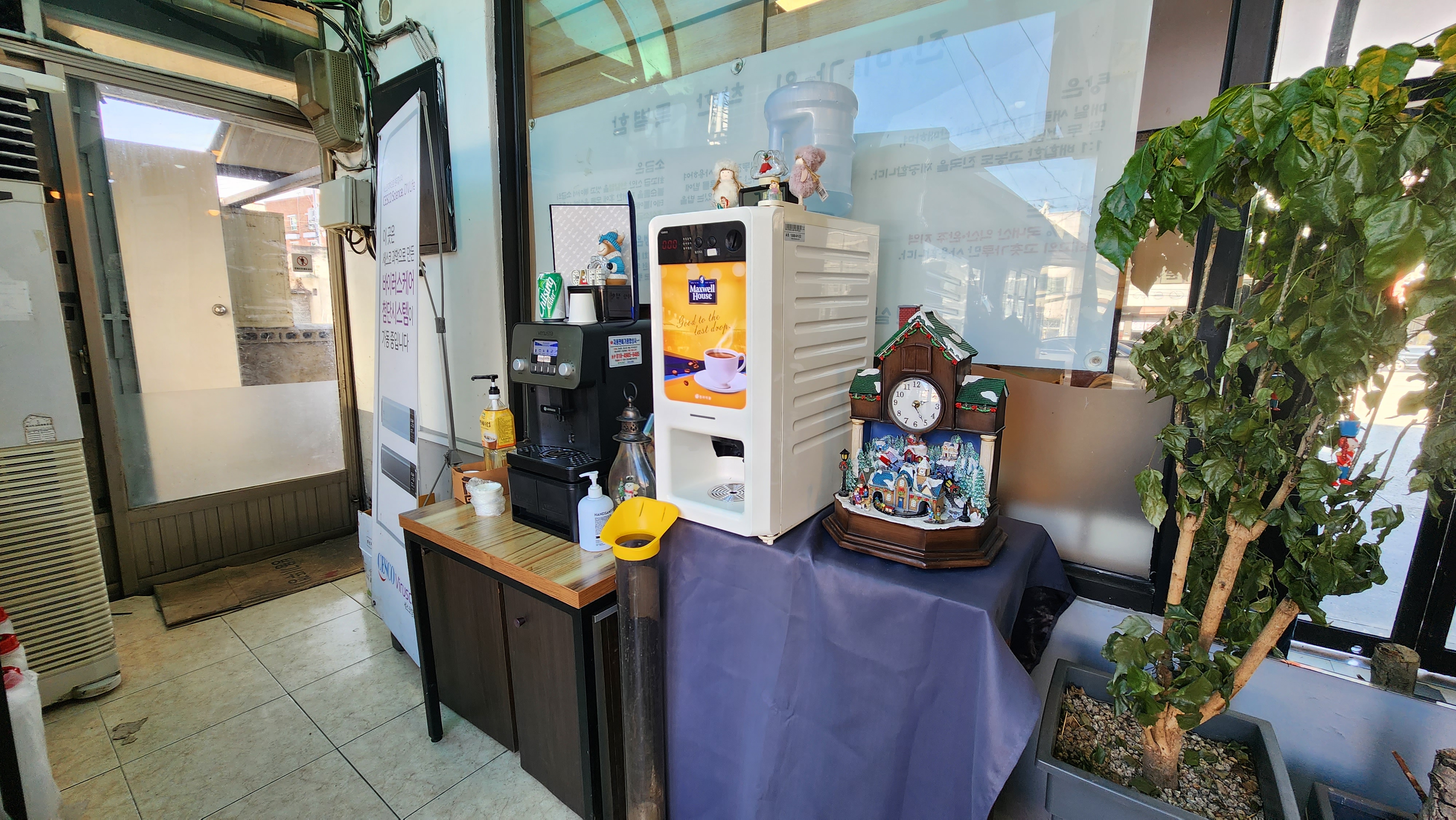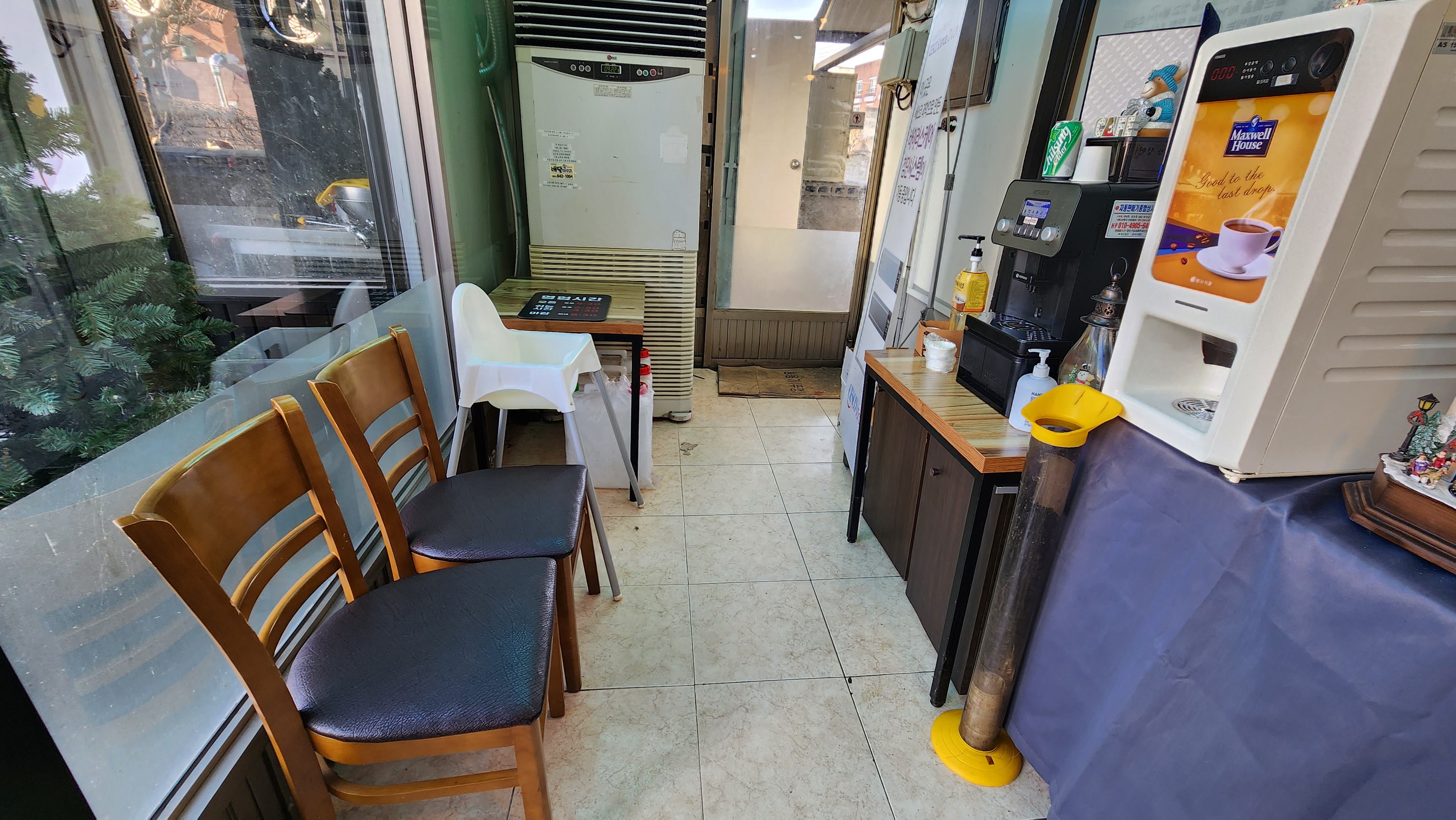 웨이팅 하는 분들이나 식후 커피타임 하실 분들을 위해 머신과 의자가 마련되어 있었고 유아 의자도 있더군요.