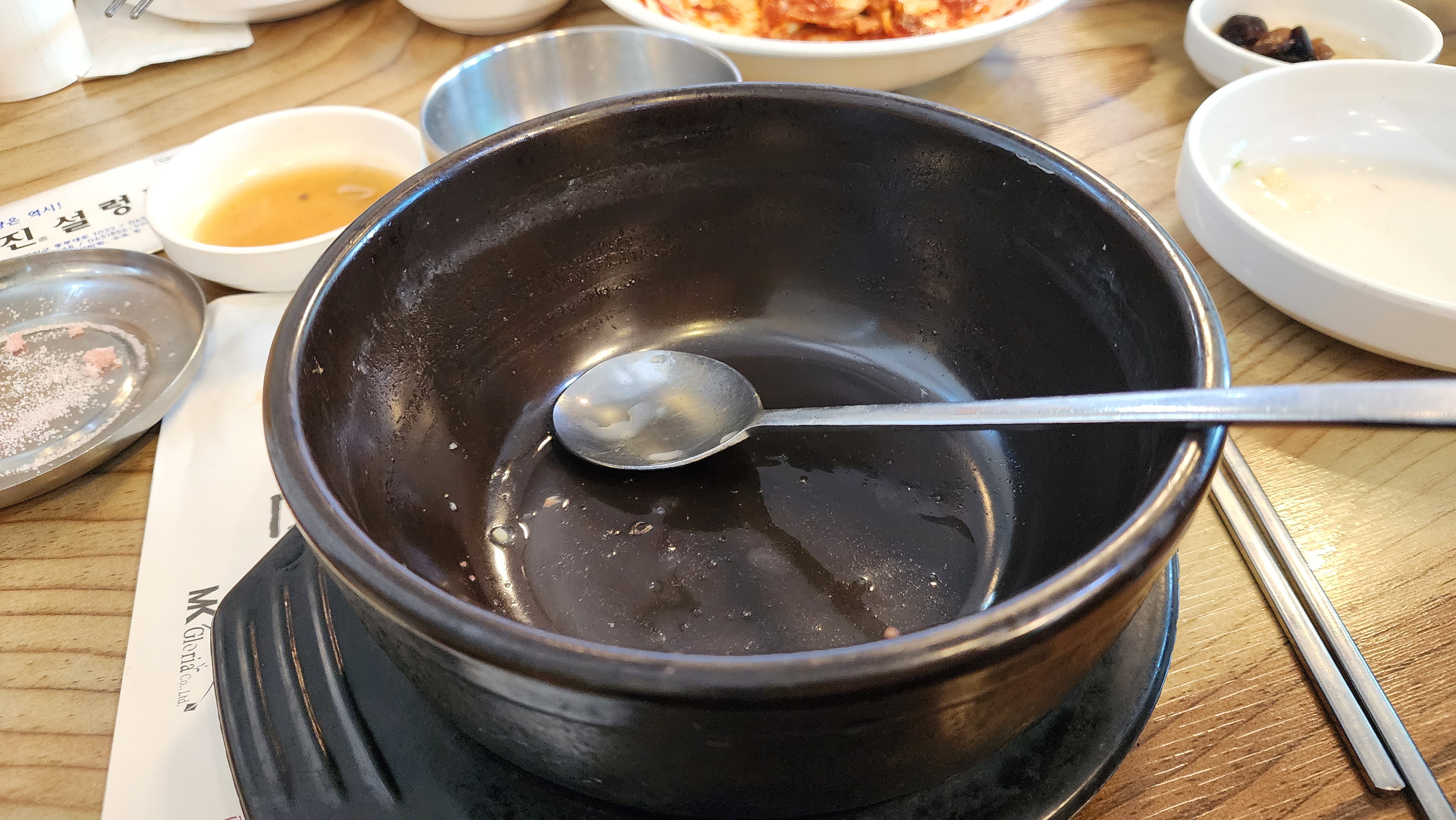 뚝배기에 고기가 실하게 들어있었고, 당면은 납작당면이 들어있었어요.