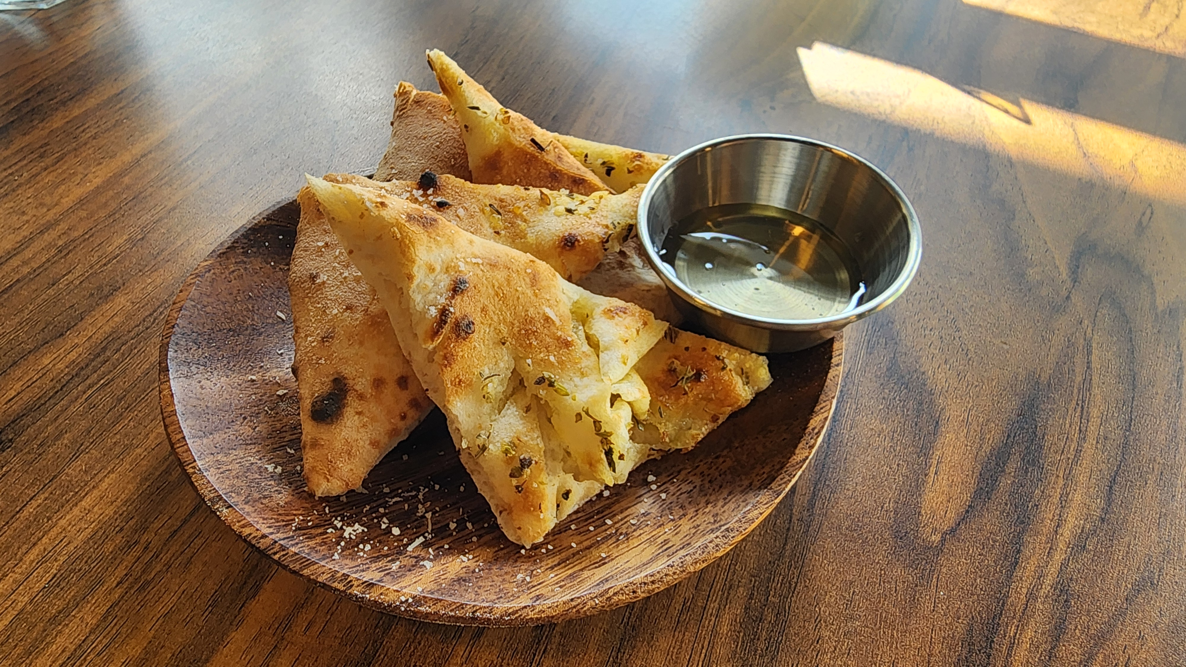 화덕에 구워져 나왔는지 풍미가 좋고, 달짝지근한 꿀에 찍어먹으니 살짝 짭짤한 맛과 어우러져 자꾸 집어먹게 되더군요.
