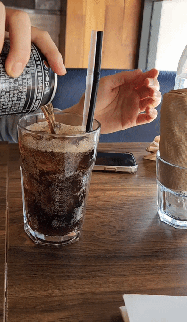 마음은 글라스 와인 한잔 하고 싶었으나 운전해야 하니까 콜라 주문했어요.