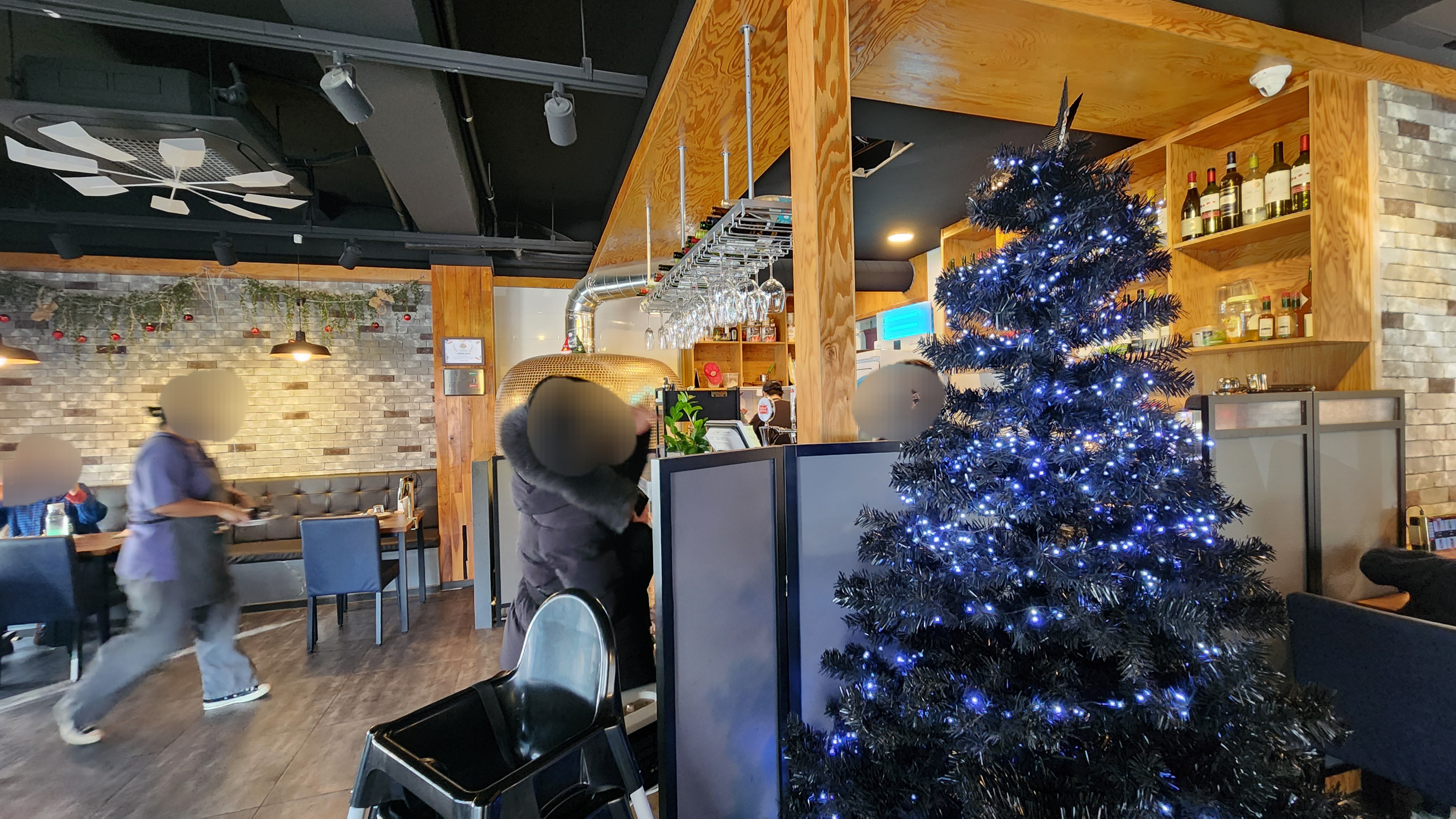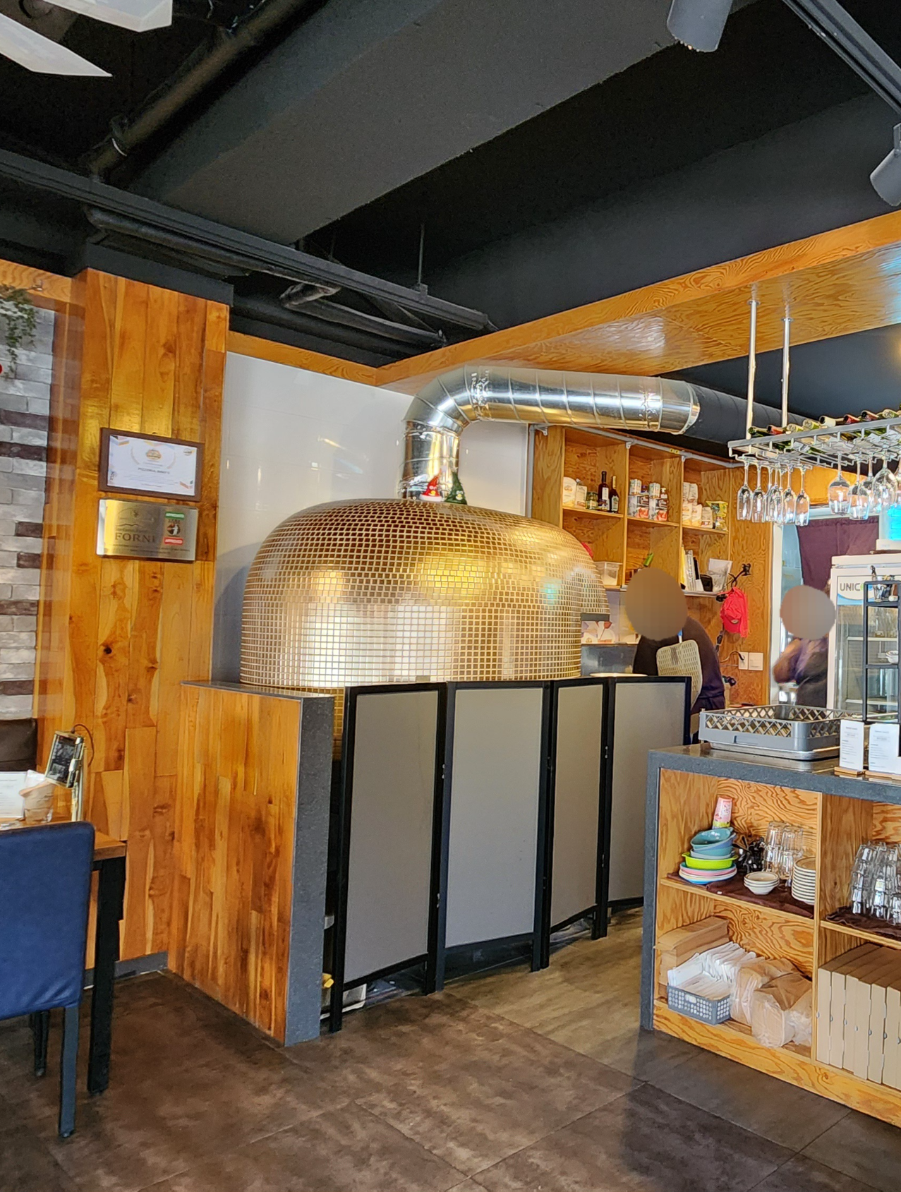 반짝이는 화덕이 레스토랑 안에 있어서 이집 피자 맛있겠구나 싶더군요.