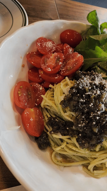 바질페스토, 와인에 절여진 올리브, 할라피뇨, 양파 , 방울토마토가 들어간 파스타인데 맛도 산뜻하고 좋았어요.