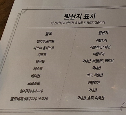 원산지가 이탈리아 인 품목들이 눈에 띄더군요.