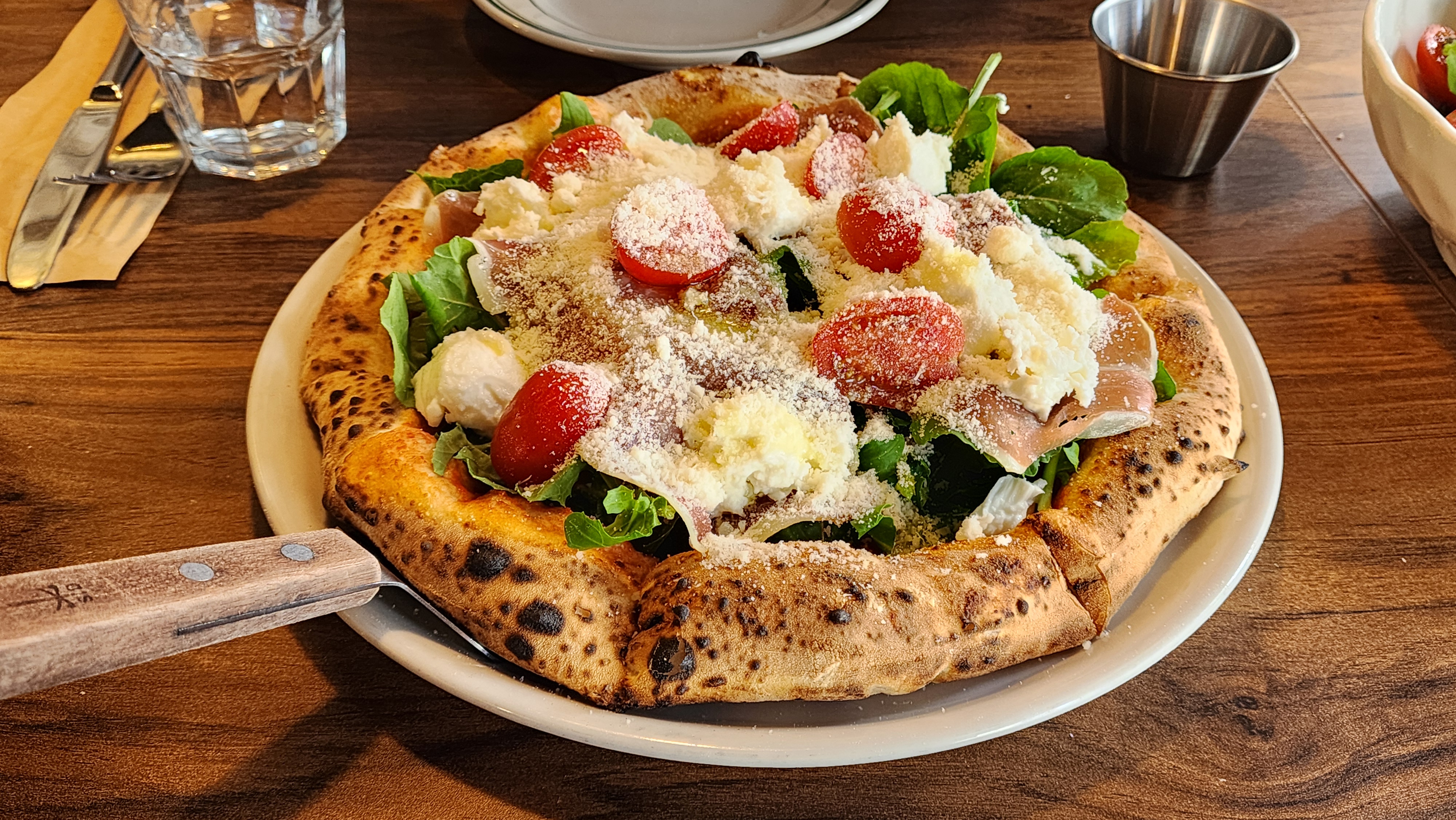 프로슈토 루꼴라 피자에 모짜렐라 치즈가 정말 맛있었어요.