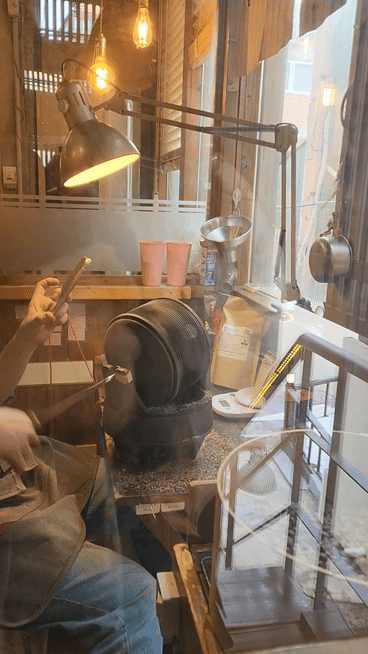 고개를 살짝 돌리면 창 너머로 직접 원두를 로스팅하는 모습도 볼 수 있었어요.