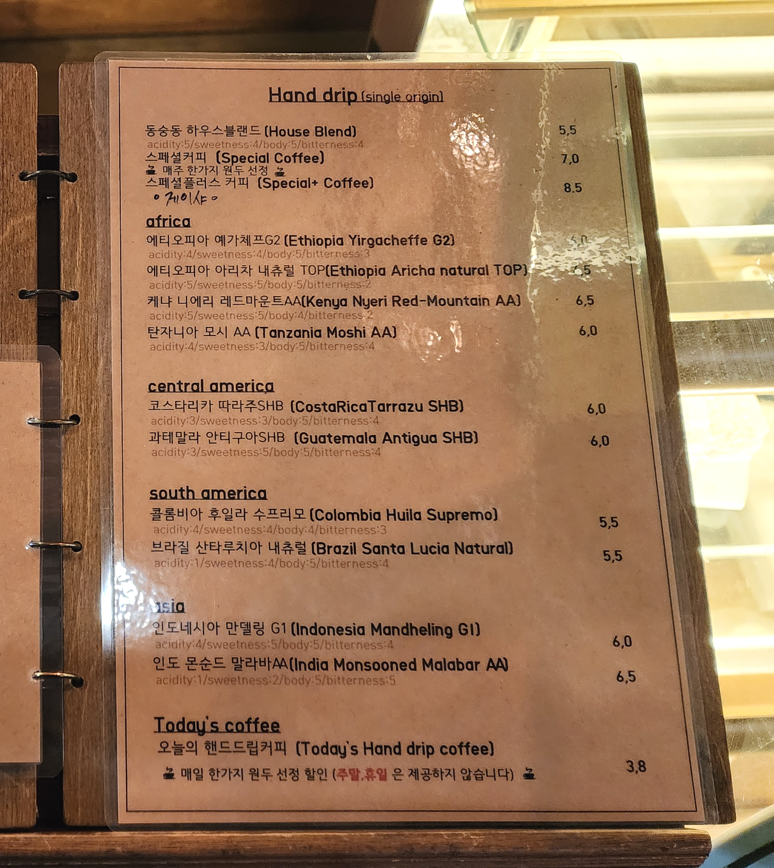 일반적인 메뉴도 있었지만 다양한 핸드드립 메뉴를 보니 이 카페, 커피에 진심이구나 싶더라구요.