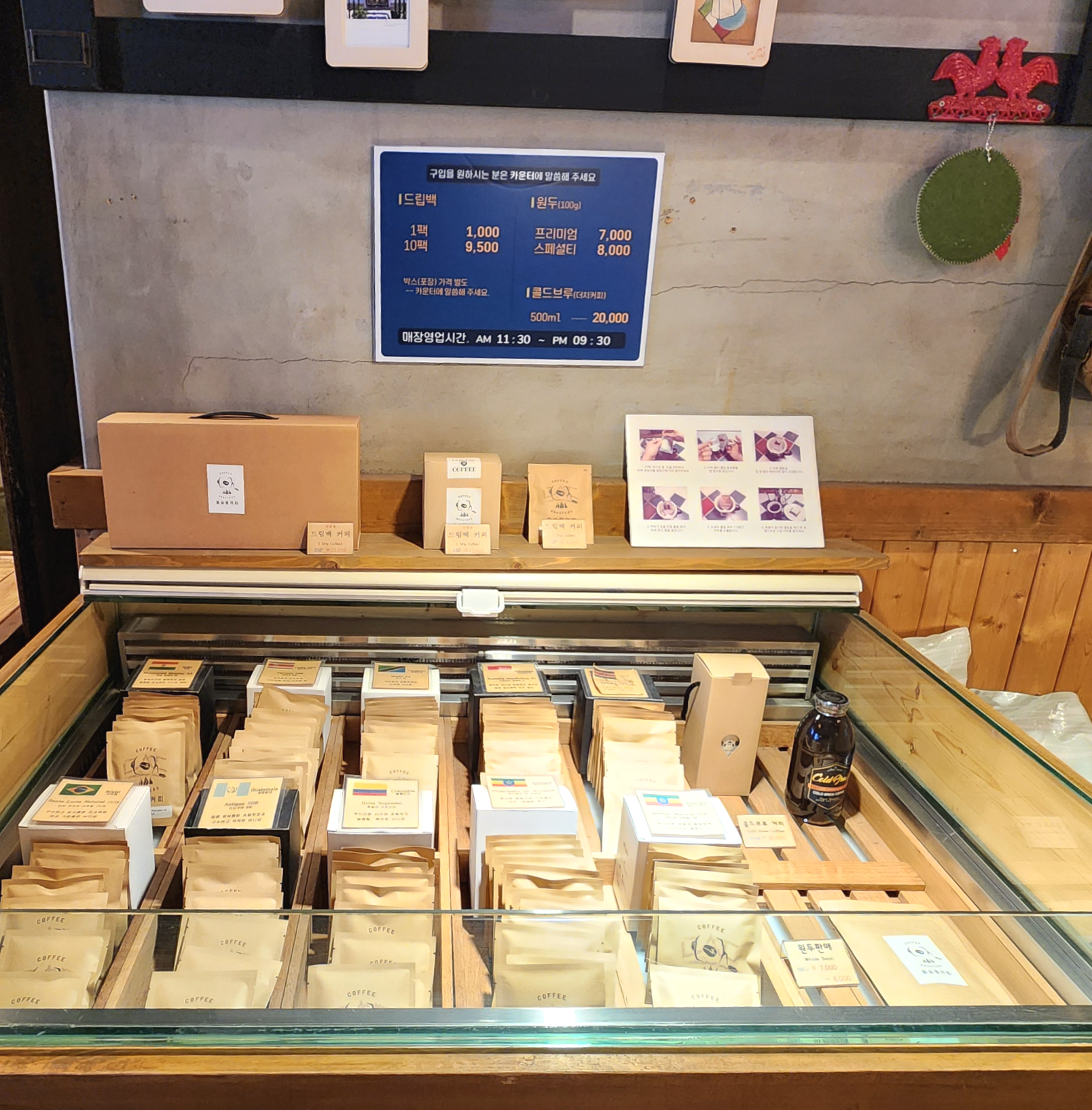 카페 앞에서 직접 로스팅 하시는 모습 보니까 이집 드립백이나 원두도 좋겠다 싶었답니다.