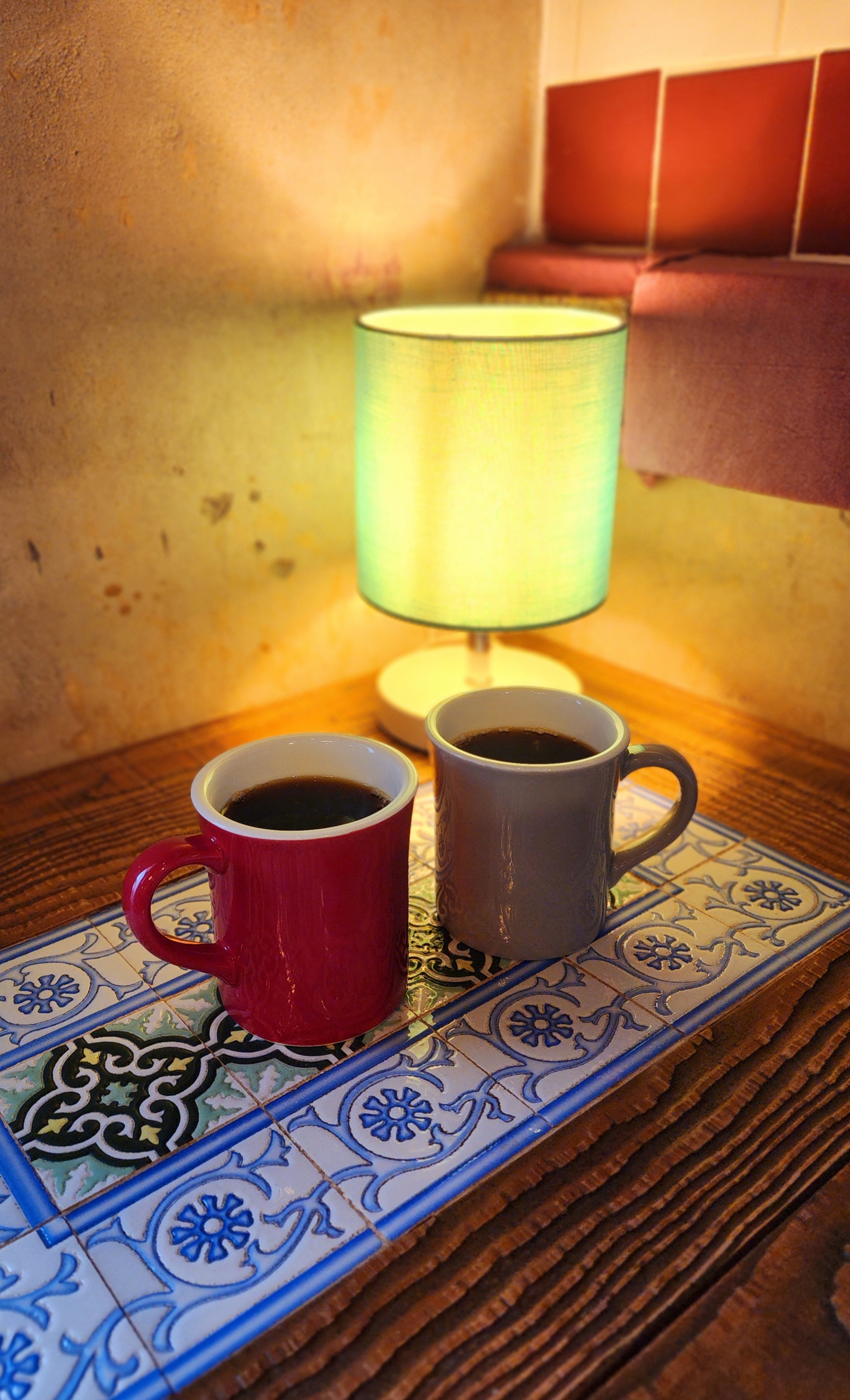 저는 구석진 자리에 앉았는데 테이블에도 포인트가 있고, 조명도 따뜻한 느낌이라 여기 잘 왔구나 싶었어요.