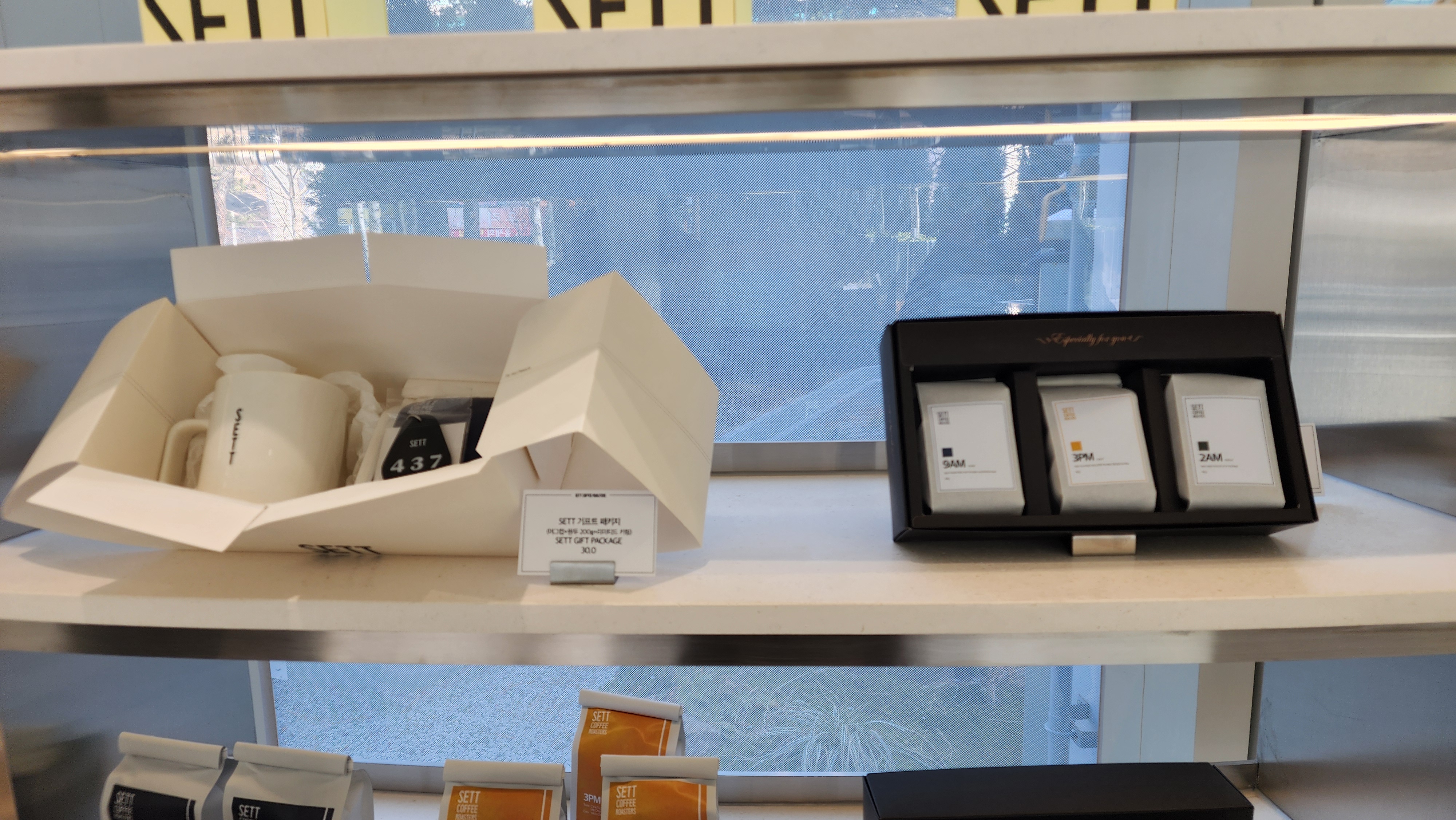 머그세트, 원두, 쿠키류도 판매중이었어요.