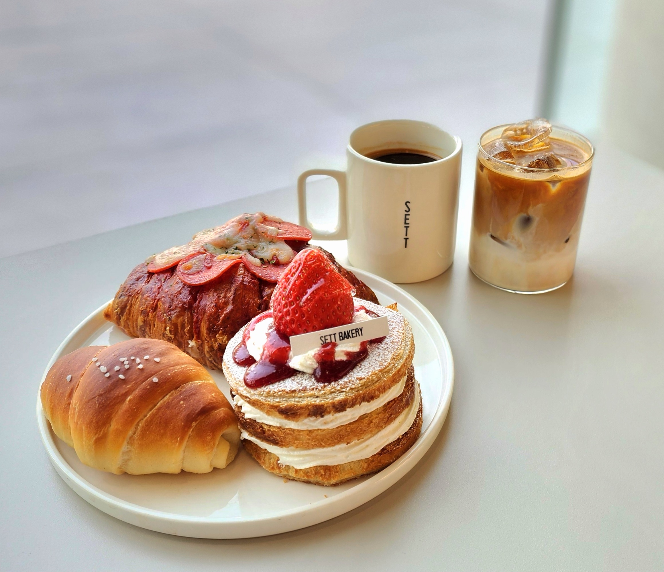 페퍼로니 크로와상, 소금빵, 스트로베리 타워를 먹었는데요 이 집 베이커리류 맛있더라구요.