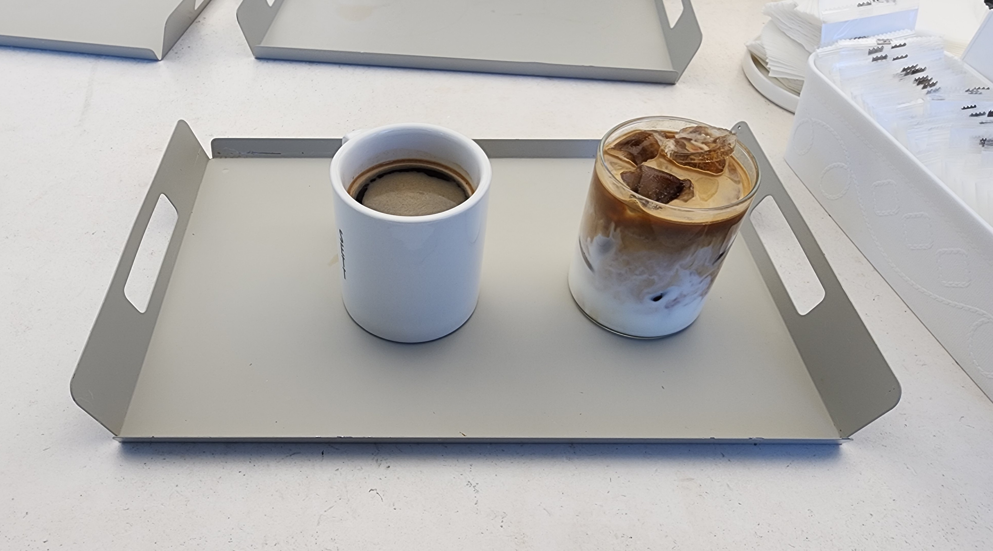 따뜻한 아메리카노와 아이스라떼 시켰어요.