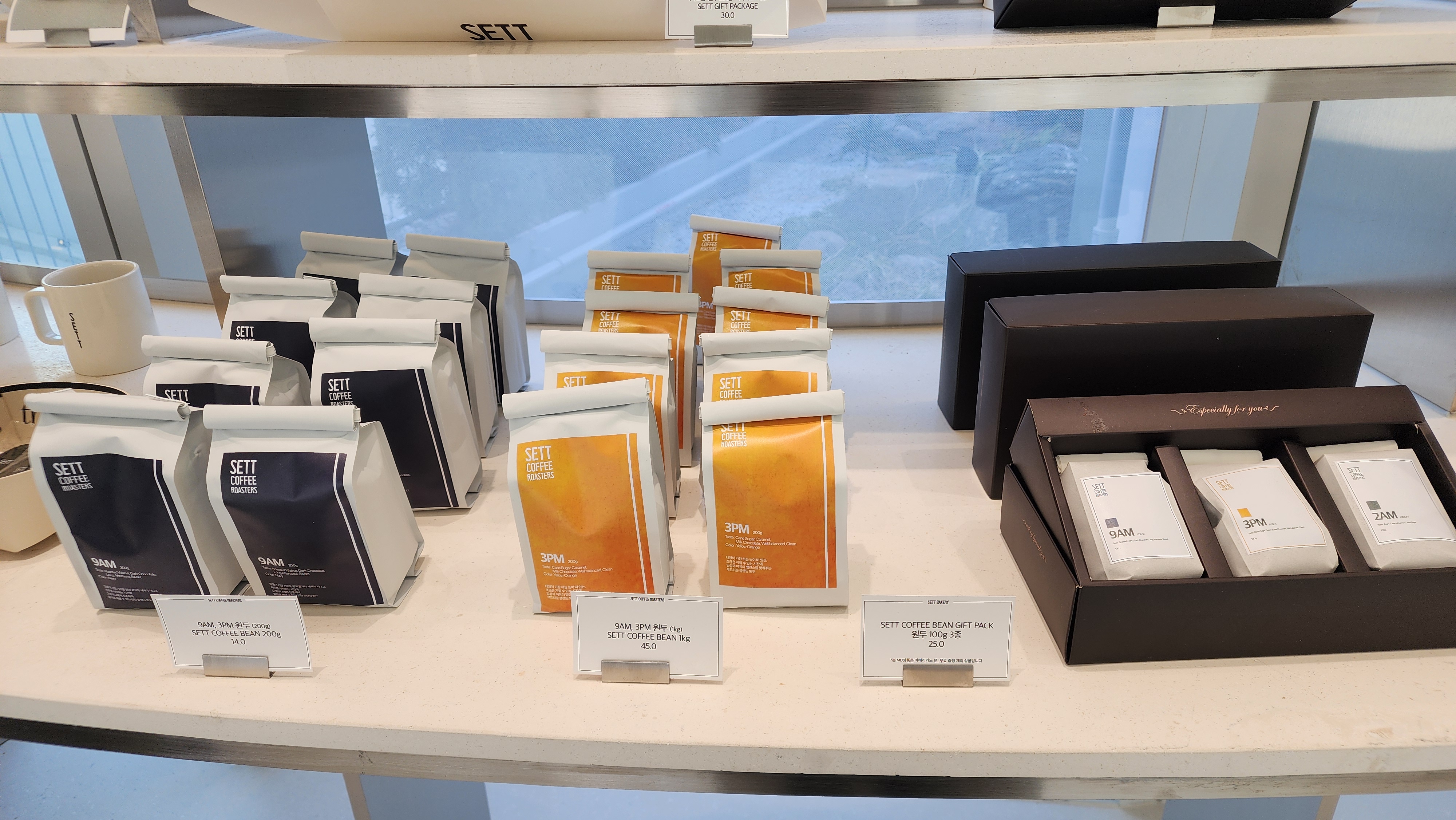 머그세트, 원두, 쿠키류도 판매중이었어요.