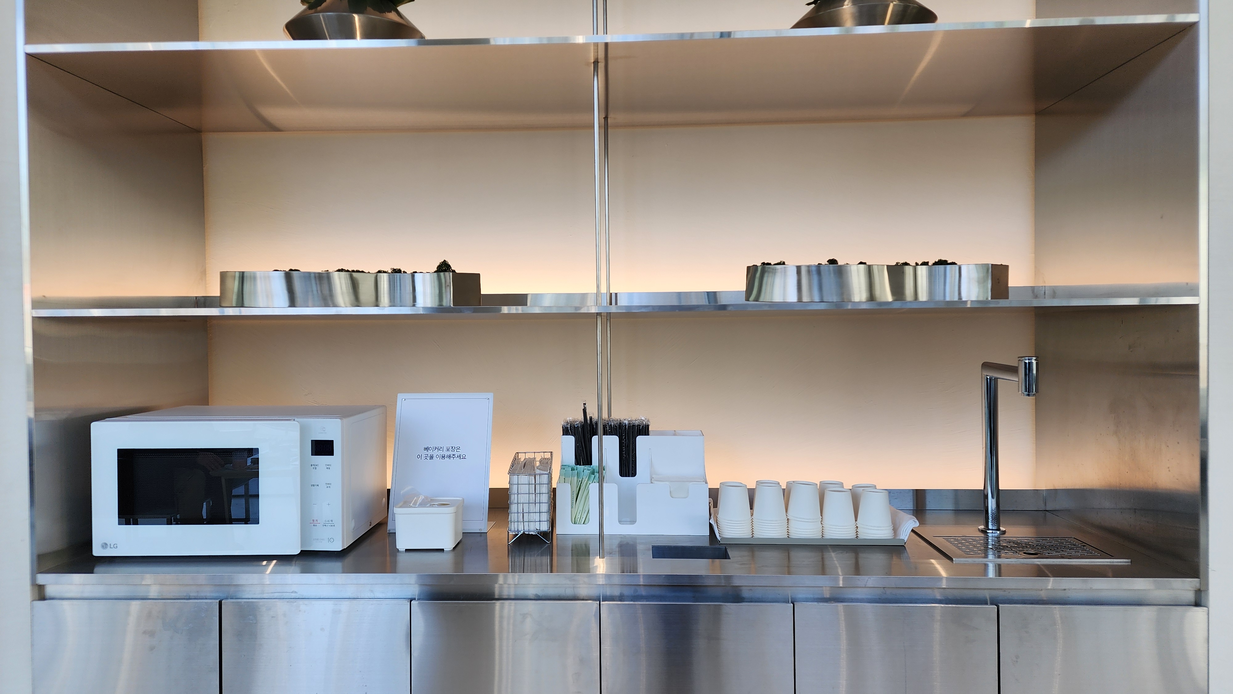 전자렌지, 포장, 음수대 등이 서비스코너가 있어서 빵은 데워먹었어요.