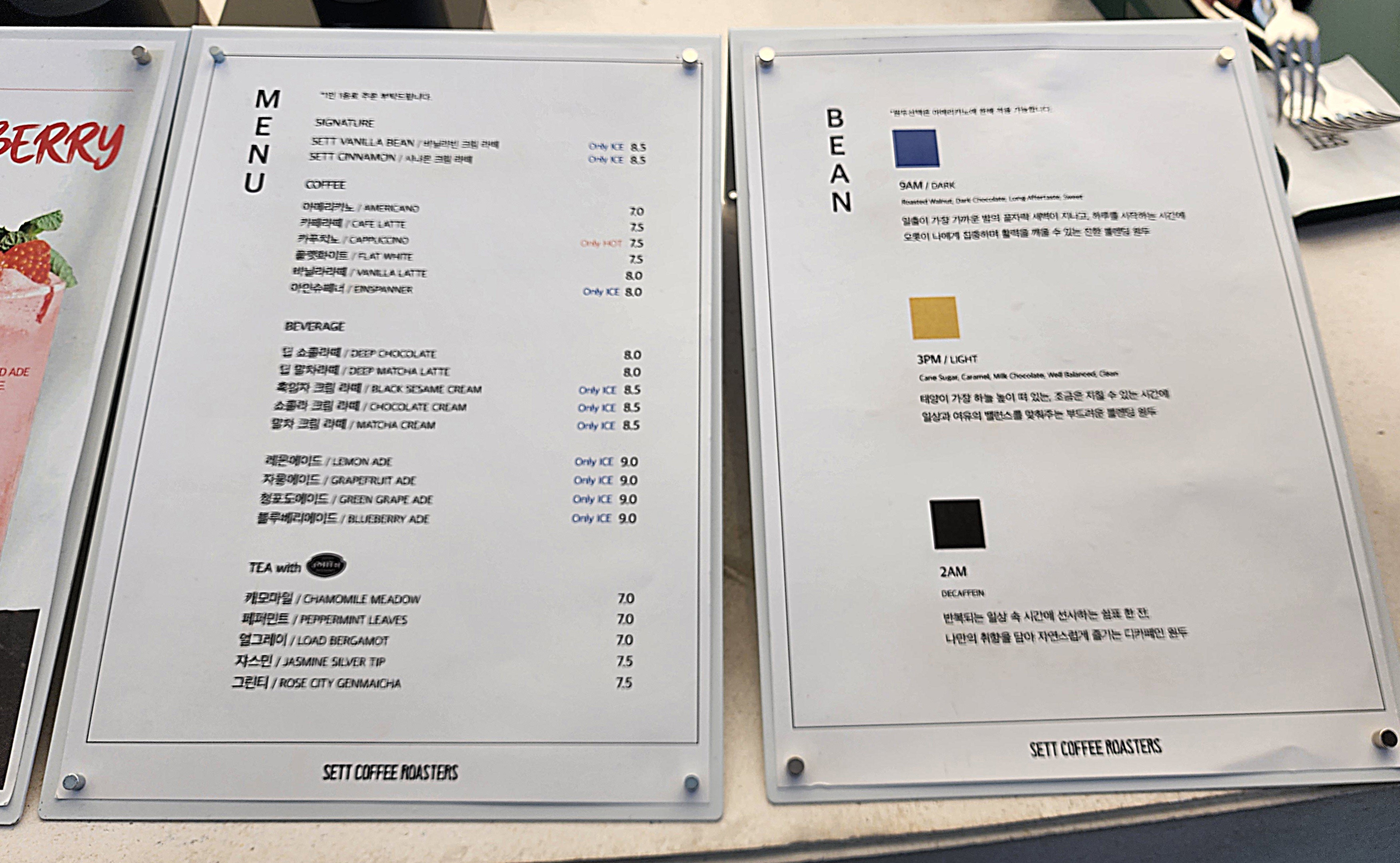 커피 주문시 원두를 고를 수 있었는데 다크, 라이트, 디카페인 중 기호에 맞게 고르시면 되어요.
