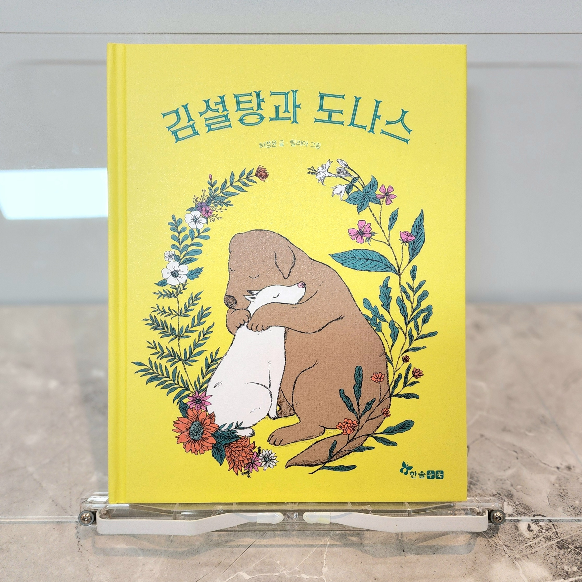 그런데 표지를 보니 노란 바탕에 커다란 갈색 개가 하얀 개를 안아주고 둘레에 꽃으로 장식 되어있는 그림에서 어떤 이야기가 펼쳐질지 짐작도 안되더라구요.