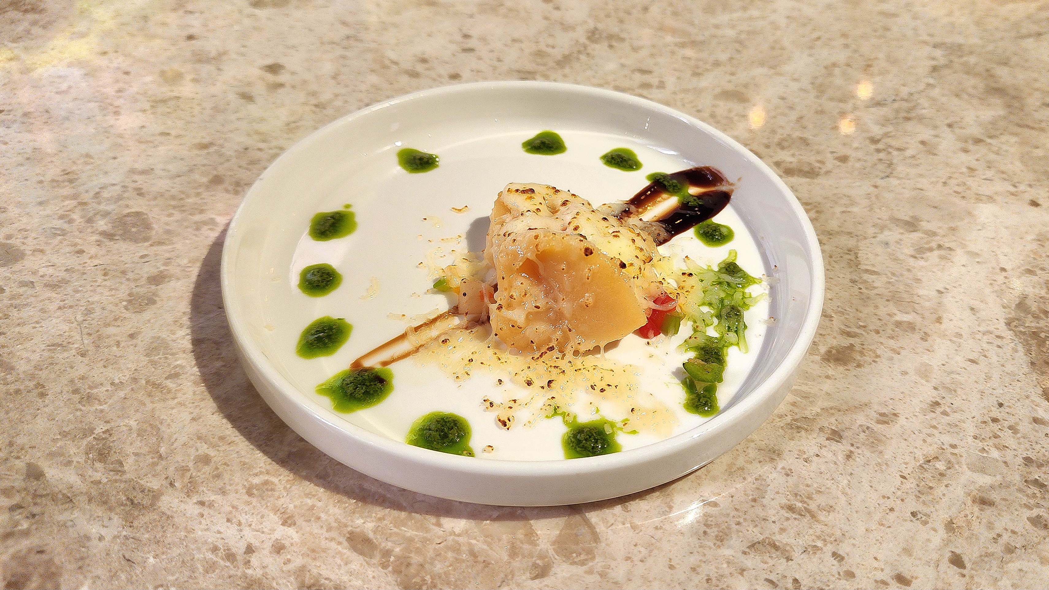 토치로 치즈를 녹여주셨고, 플레이팅도 신경써서 나온 키조개 관자였어요.