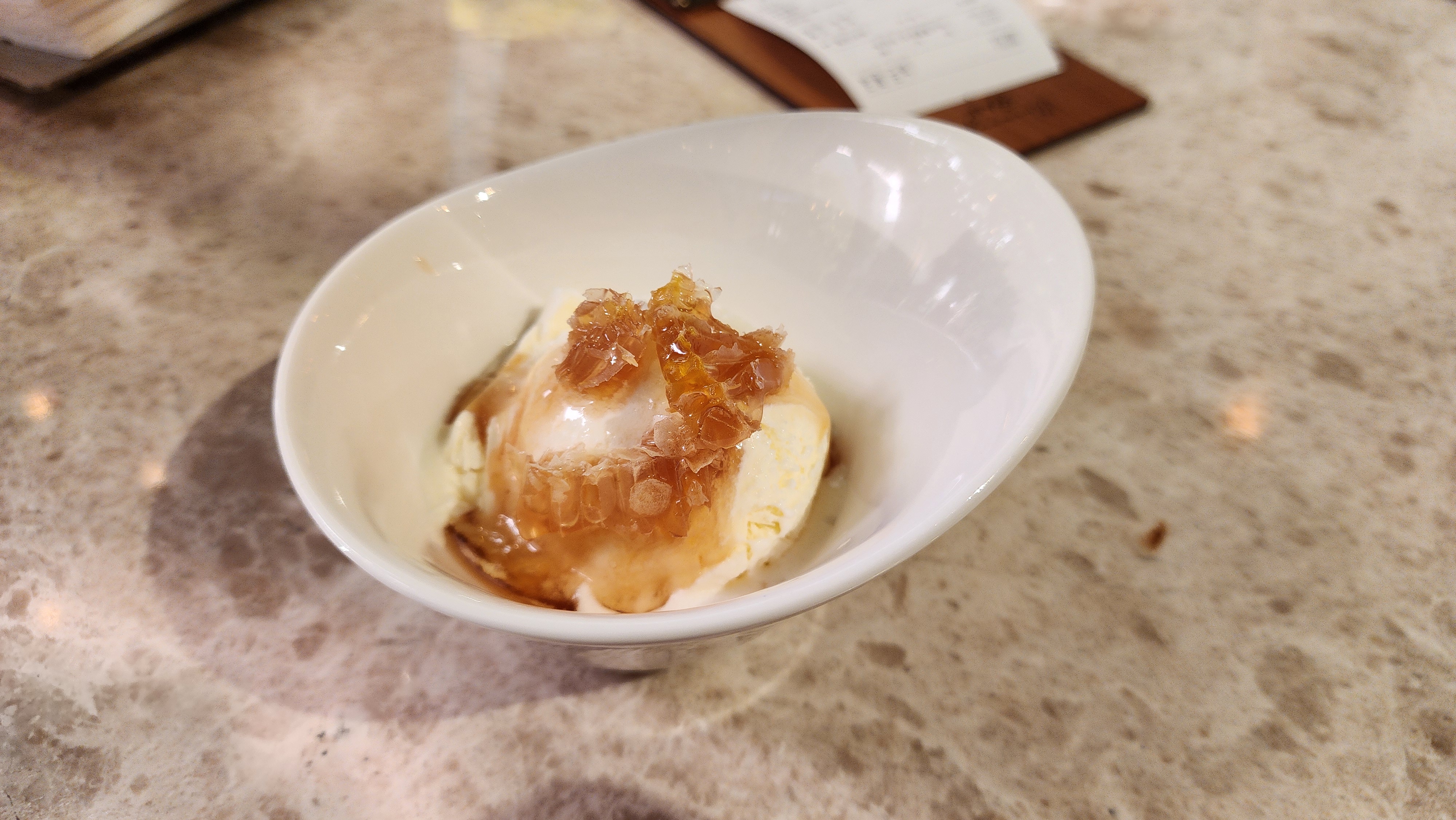 후식은 바닐라 아이스크림에 벌집이 올라가 있었는데 달콤하게 마무리 할 수 있었네요.