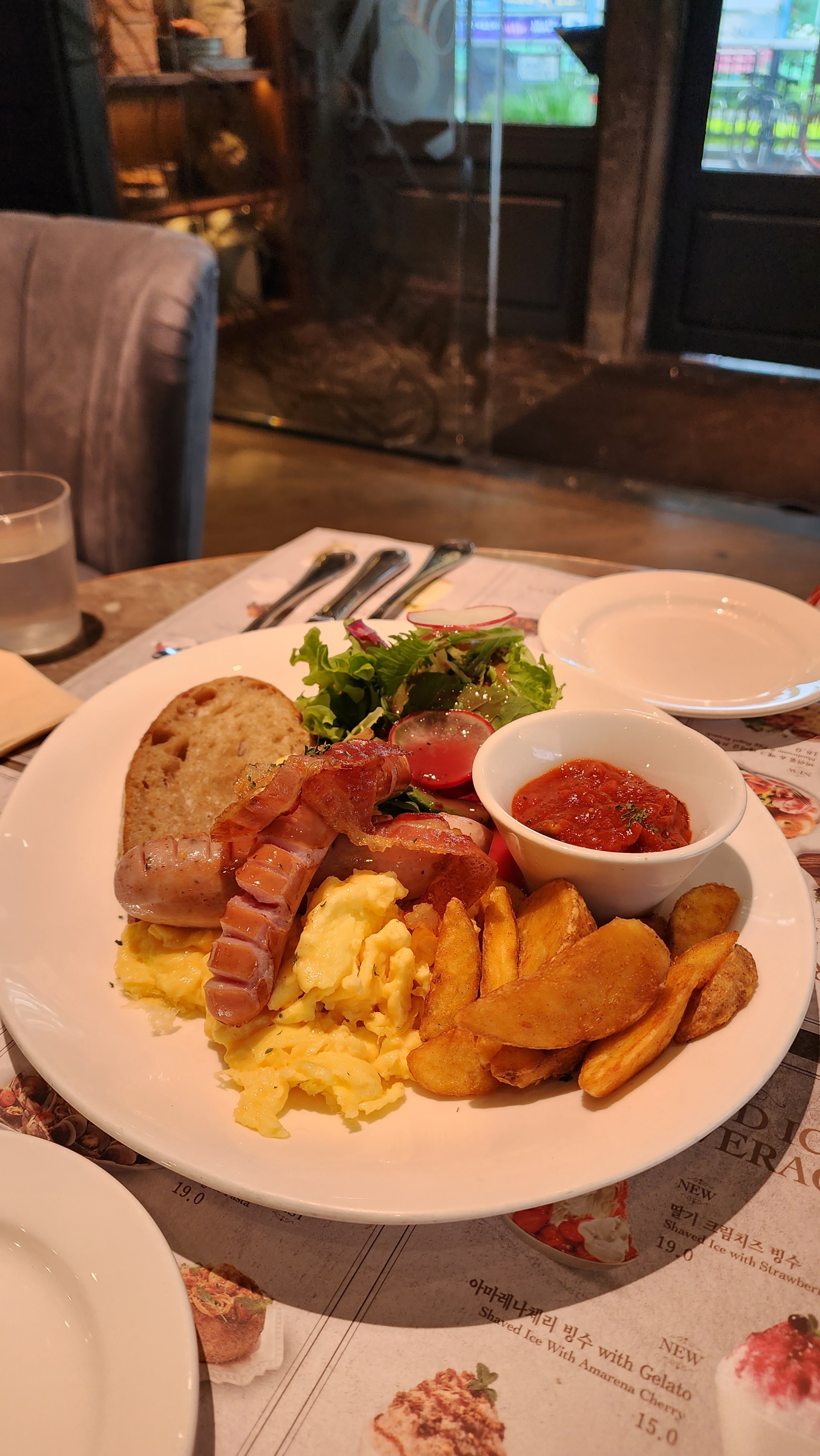 스크램블에그 촉촉하고, 소세지랑 베이컨, 감자튀김까지 낭낭해서 한접시 먹으면 든든한 느낌이예요.