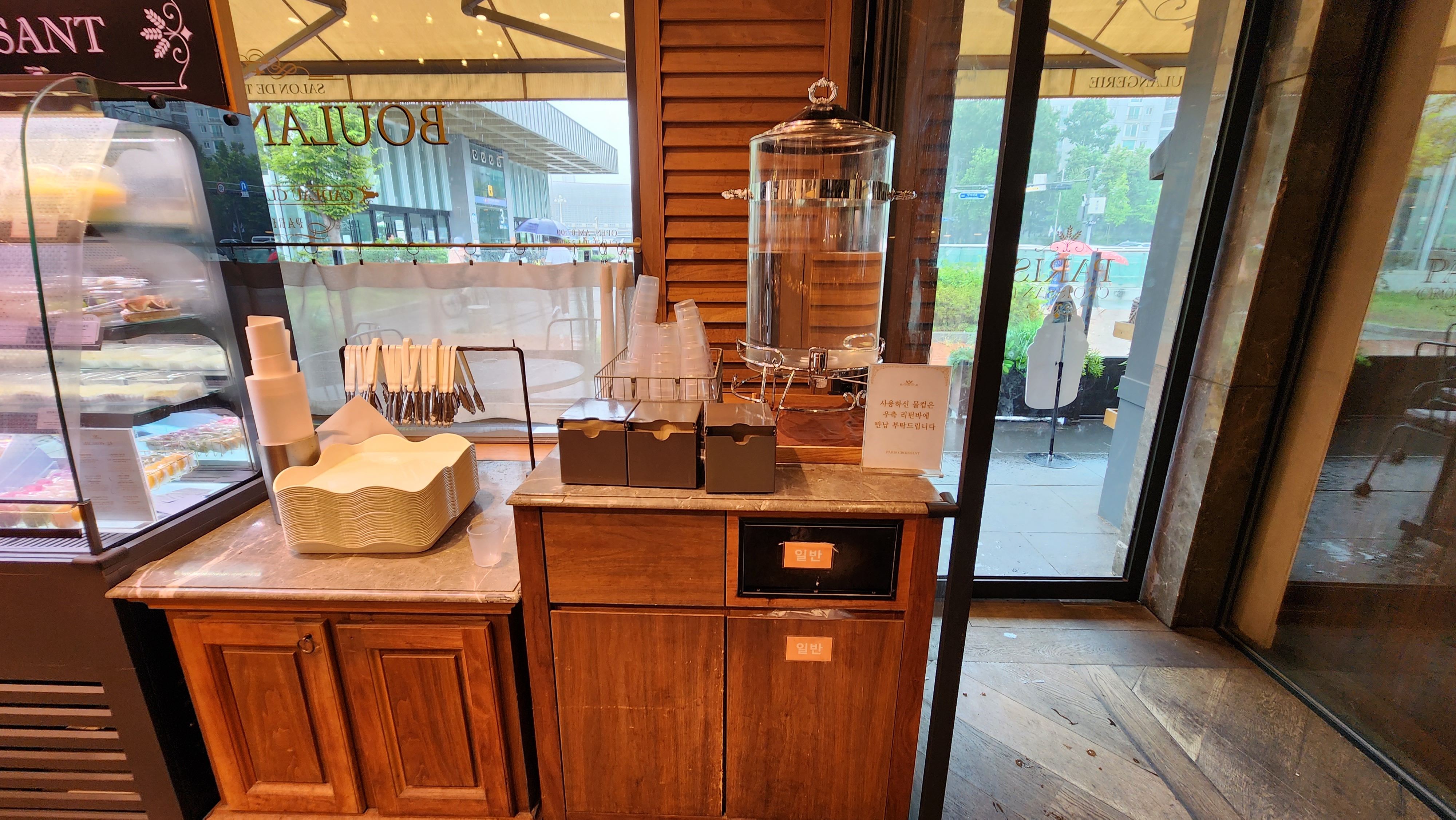 베이커리쪽에 물과 냅킨 등도 있었답니다.