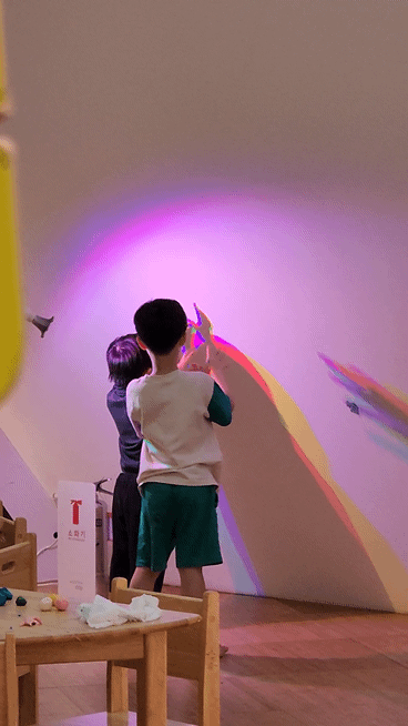 클레이를 밟으며 촉감 놀이도 하고, 3원색 조명에 그림자 놀이도 하면서 즐거운 시간 보내는 모습을 보니 애미는 그저 흐뭇했어요.