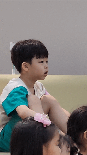 프로그램 시작 시 아이들이 모여앉아 영상을 보며 이야기 나누기를 하더군요.