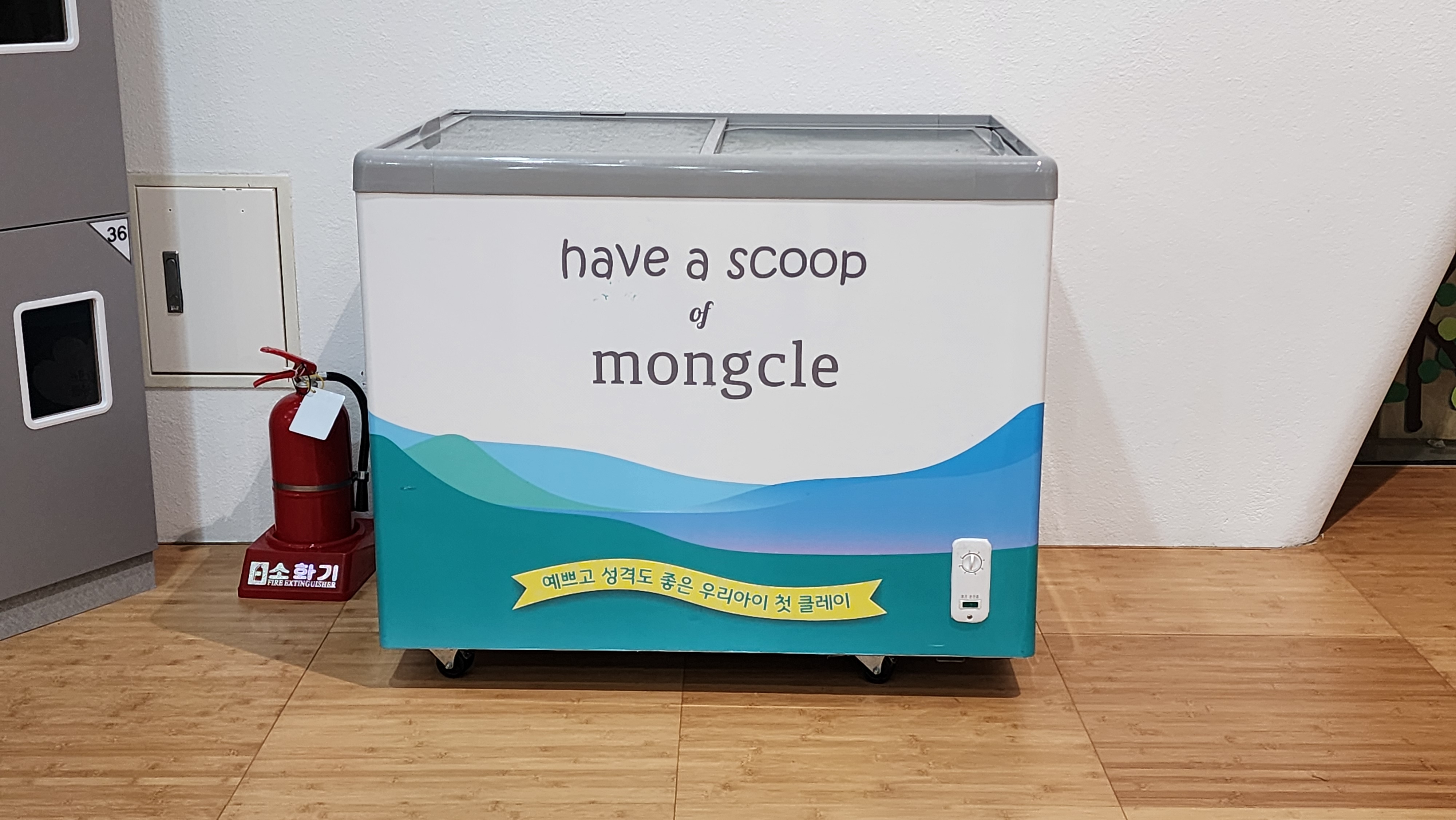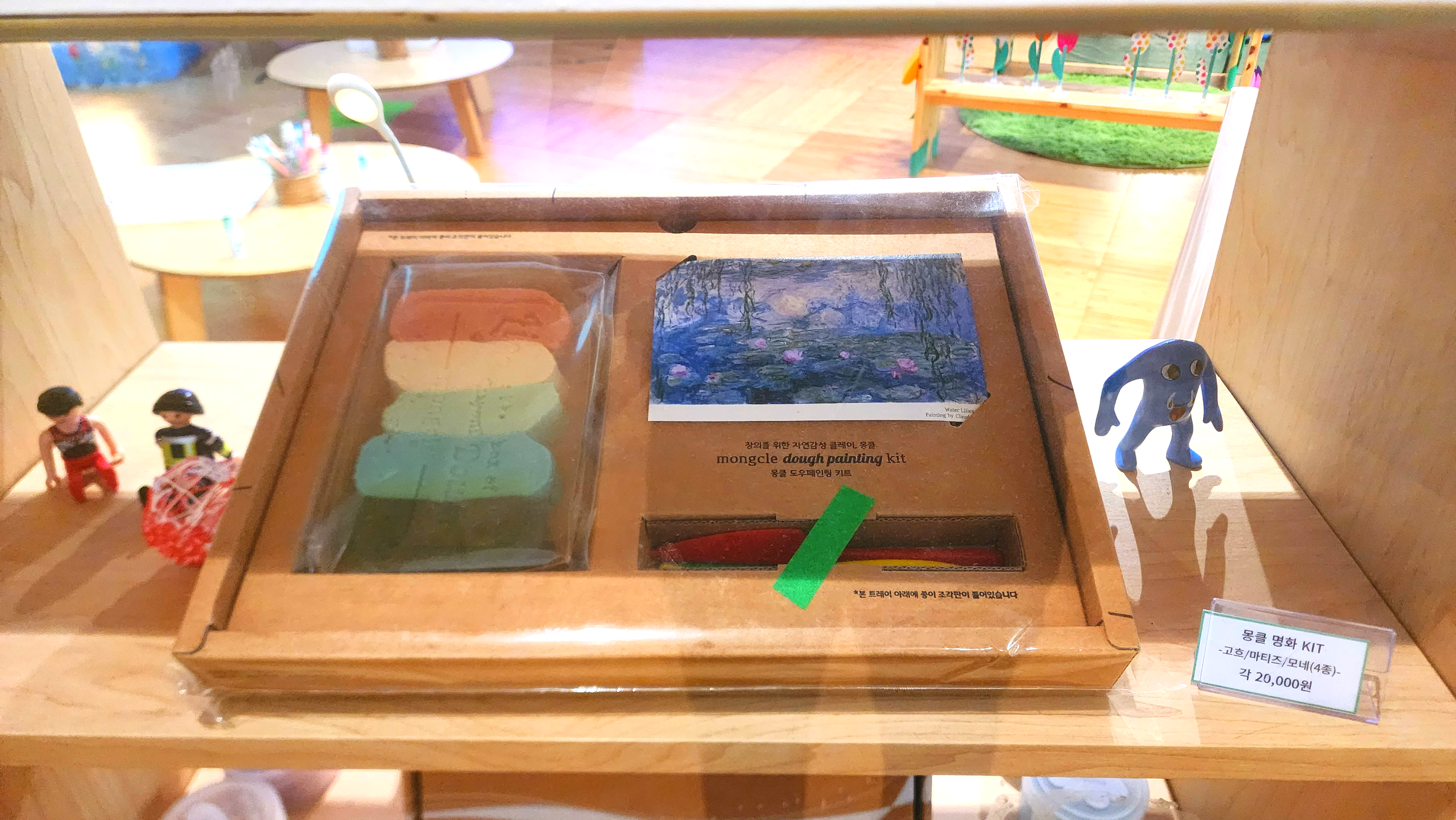 아이들이 마실 수 있는 음료와 몽클의 도우 제품들도 판매중이었어요.