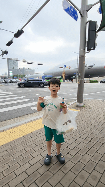 디키디키에서 즐거운 시간 보내고 한껏 신난 동글이 모습이예요.