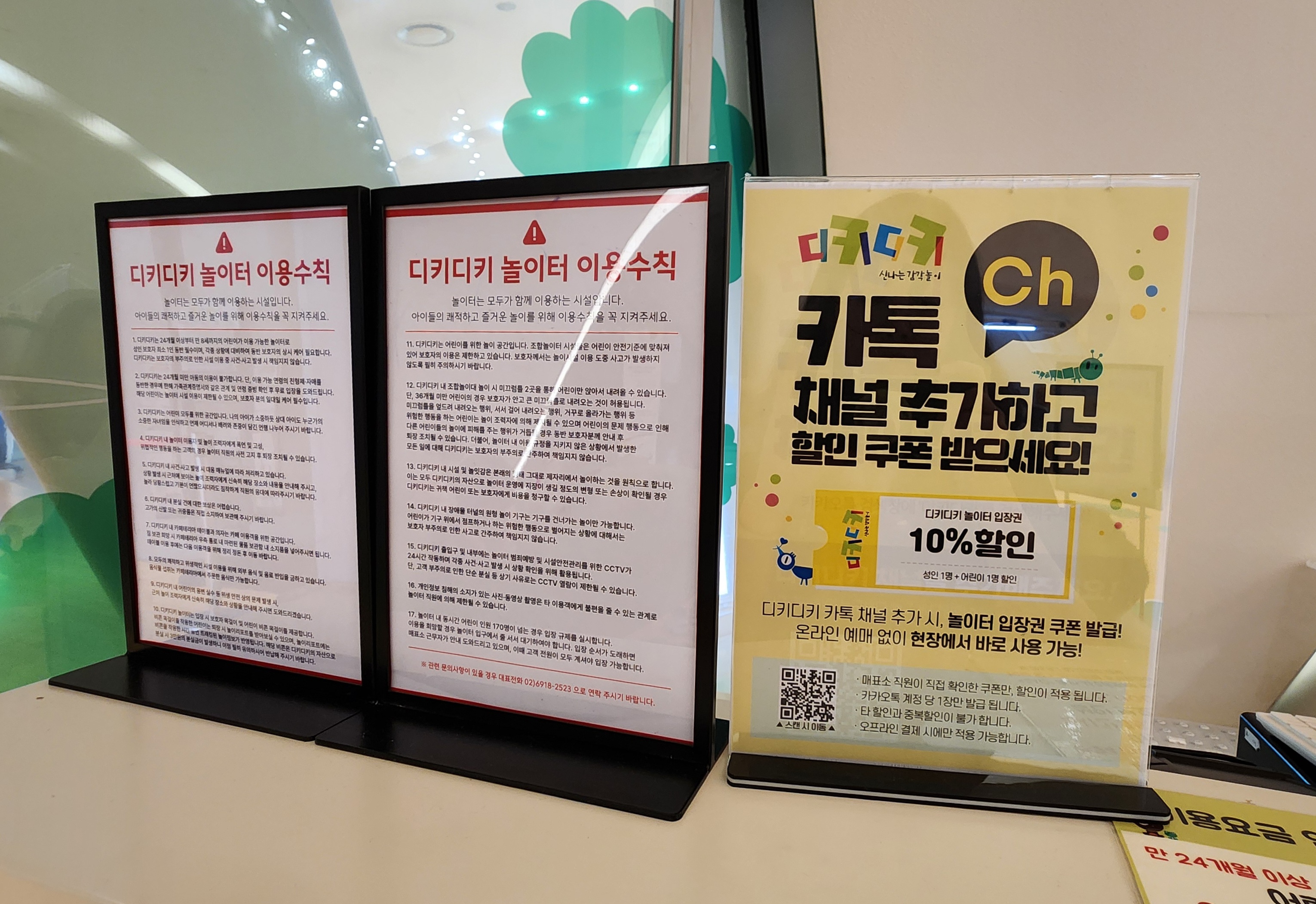 디키디키 놀이터 이용수칙이 있었고, 카톡 채널 추가시 10%할인쿠폰 안내도 되어있더군요.