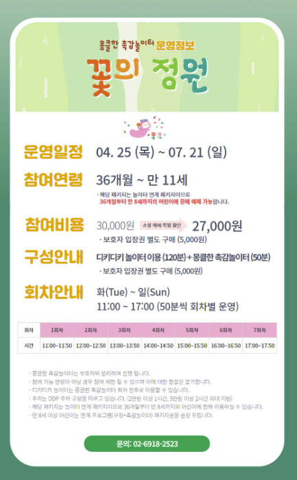 몽클한 촉감놀이터는 7월 21일 까지 <꽃의 정원>이라는 주제로 운영되고 그 이후에는 주제가 바뀌더라구요.
