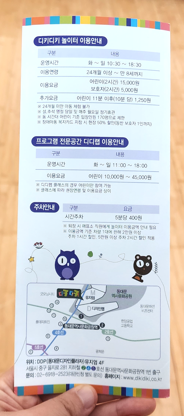 저는 동글이랑 대중교통으로 DDP에 방문했는데요, 디키디키는 뮤지엄 건물 4층에 디자인놀이터 라고 안내 되어 있어요.
