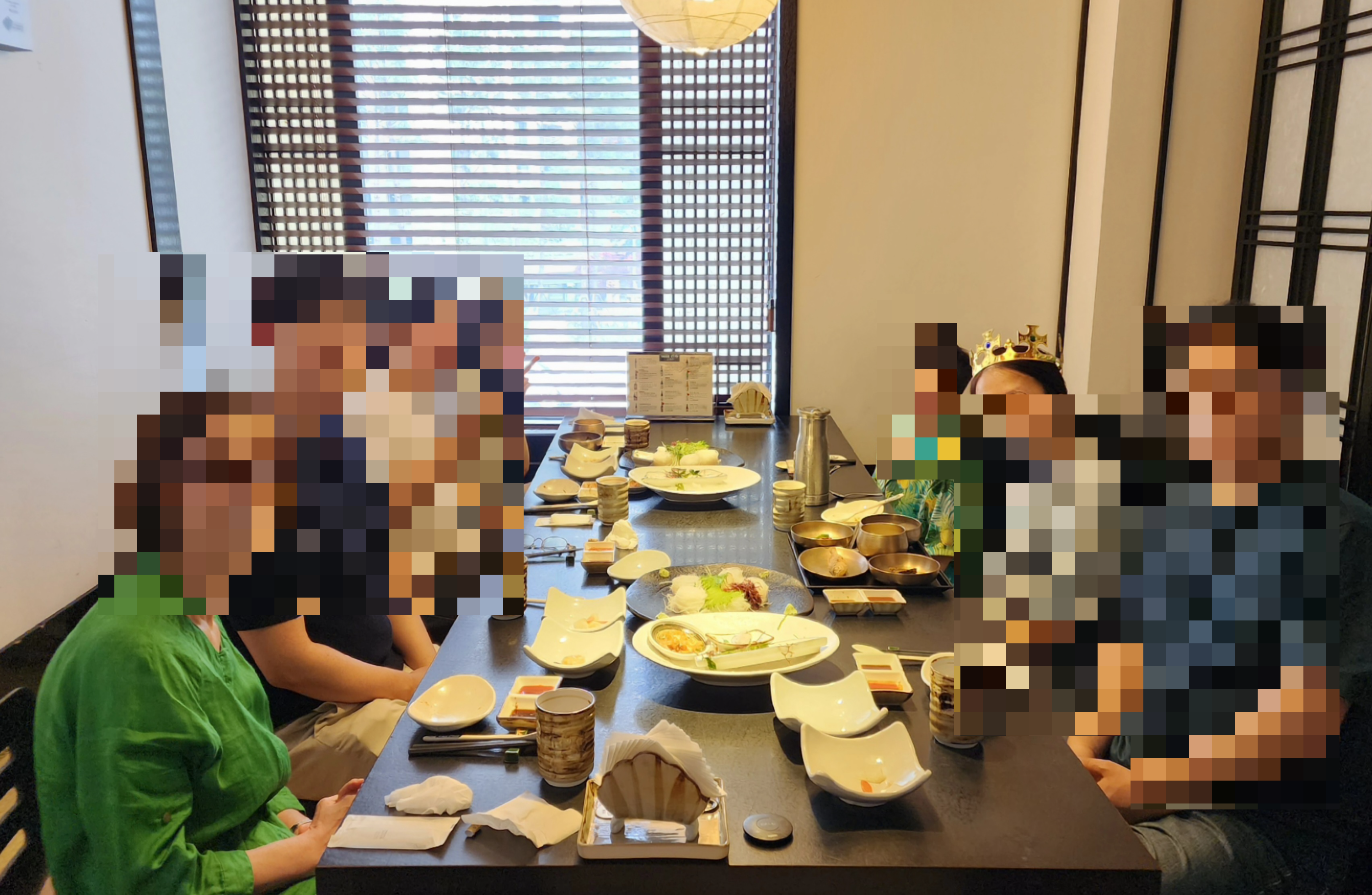 성인 여섯에 초등학생 한명이 방문했었고요, 프라이빗한 룸에서 가족 식사를 했던점이 정말 좋았어요.