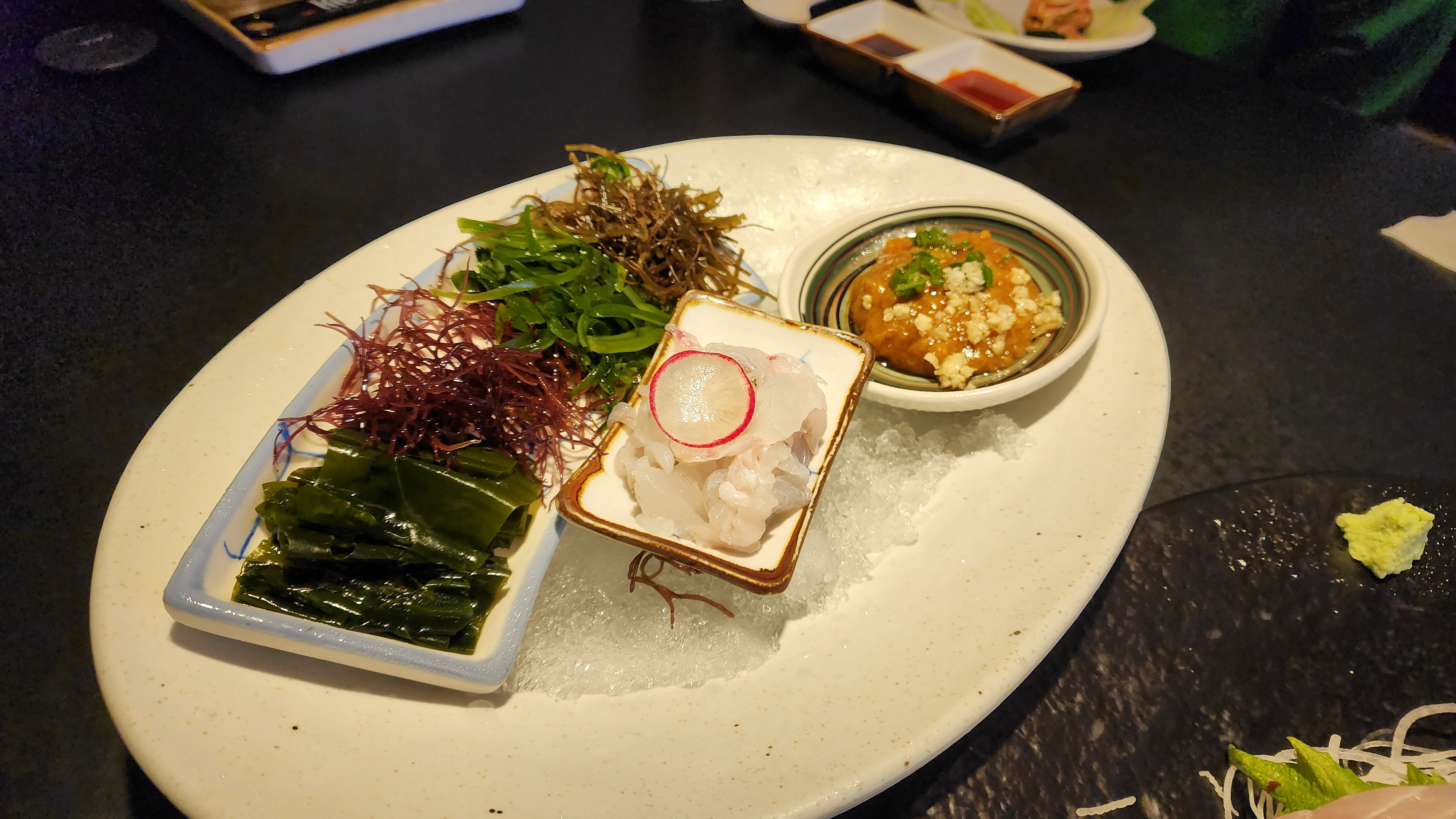 쌈장에 세꼬시와 오독오독 식감이 살아있는 해조류를 같이 먹는 재미도 있었어요.