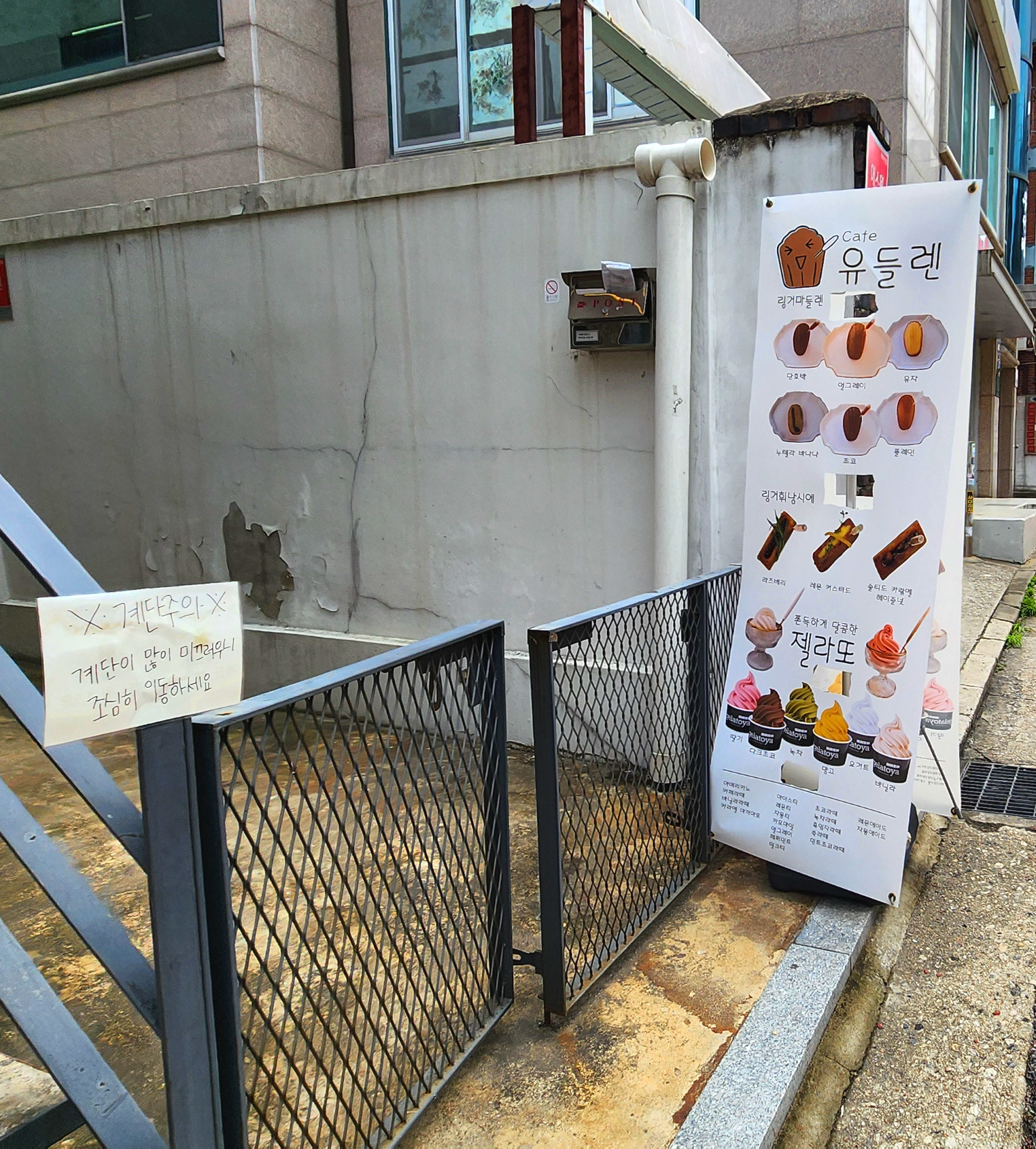아이와 홍대에 전시 보러 갔다가 점심도 맛있게 먹고 카페인 수혈하러 카페에 가고 싶은데 아이는 아이스크림이 먹고 싶다고 하고 말이죠, 다 충족하려고 아이스크림 파는 카페 찾다가 가게 된 곳이 카페 유들렌 이예요.