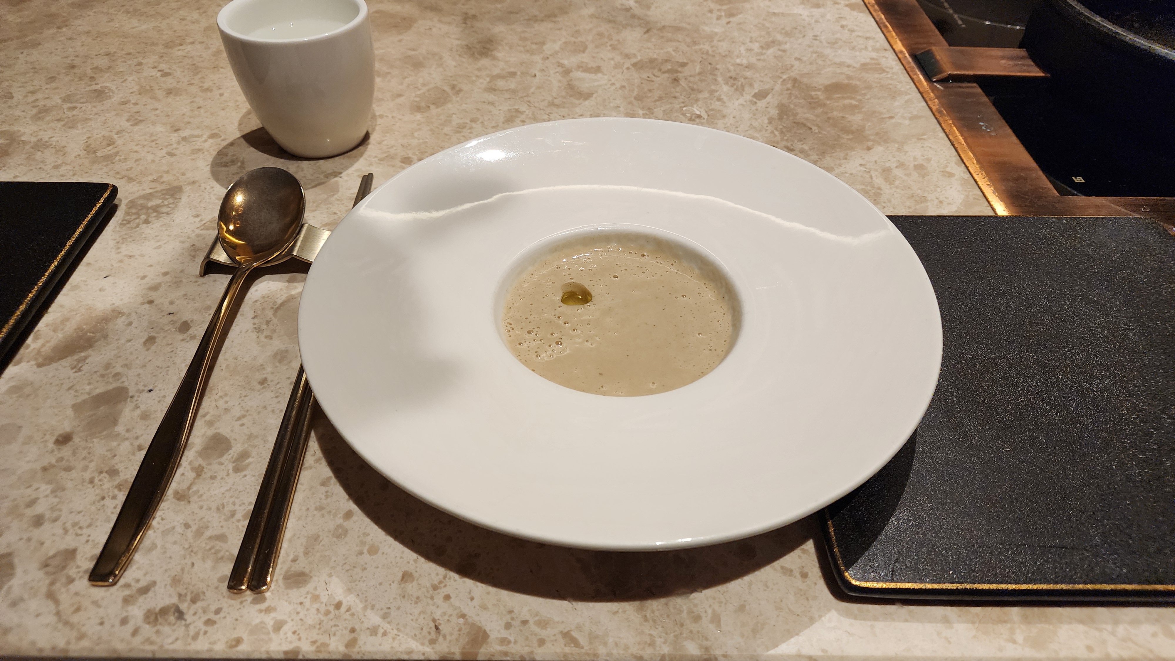 버섯 스프였는데요, 트러플 오일을 곁들일지 물어보시더라구요.