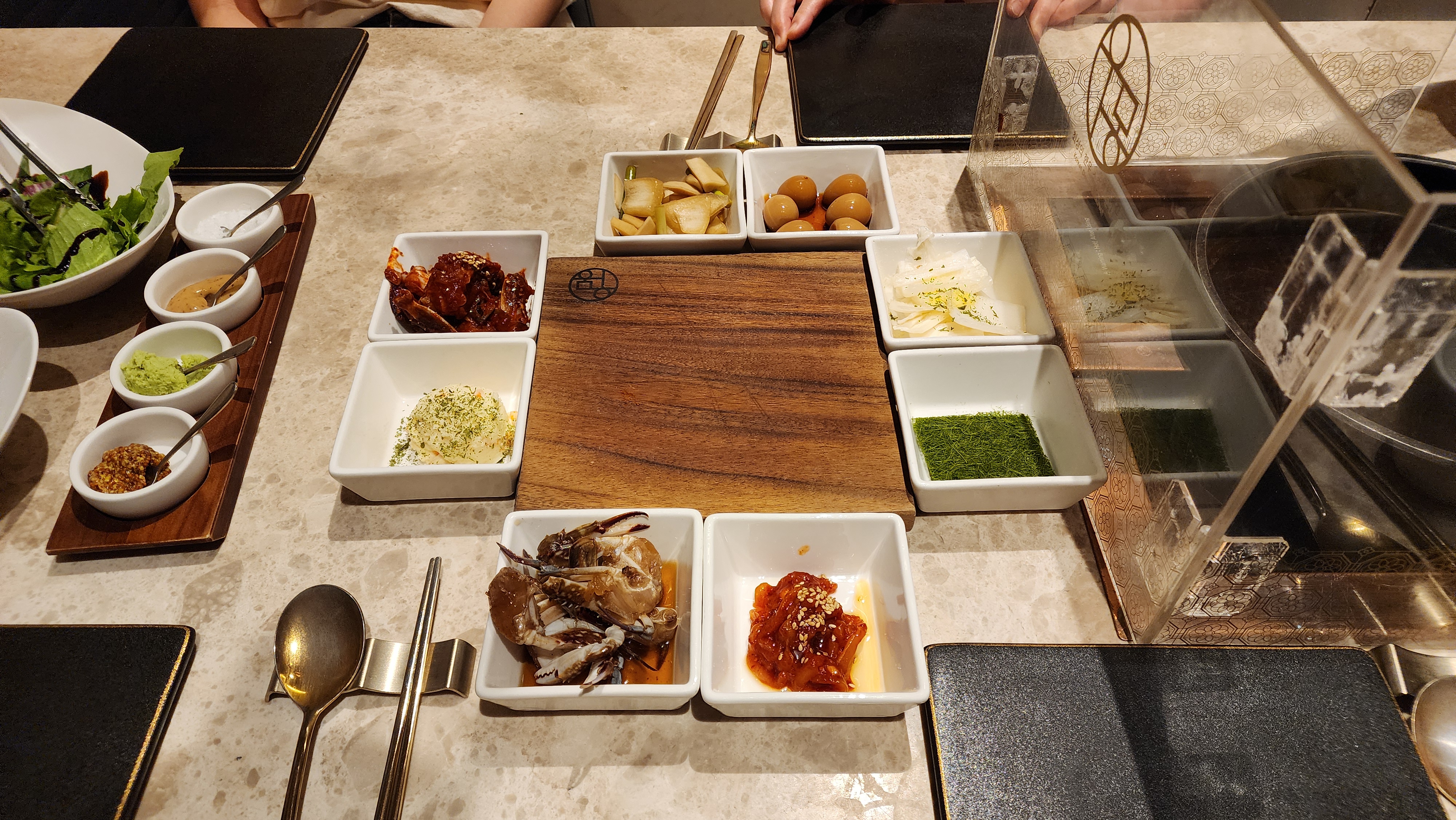 간장게장도 양념게장도 비린맛이 없어서 좋고 고기에 곁들여 먹을 수 있도록 감태, 백김치, 장아찌, 젓갈, 감자 샐러드 등이 나와서 다양한 맛을 즐길 수 있는 것도 좋았어요.