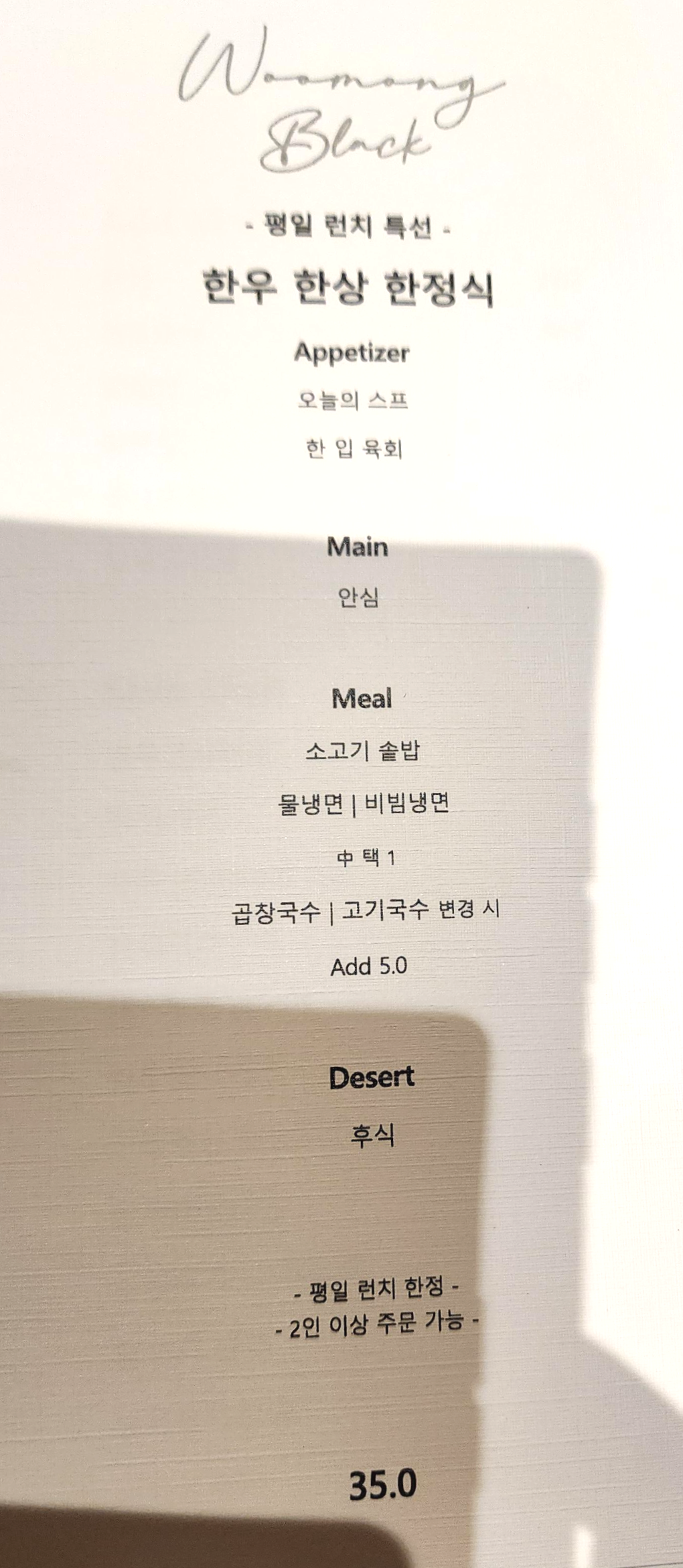 [ 분당 정자 카페거리 맛집 ] 우몽블랙 - 평일 런치 특선 한우 한상 한정식 후기(생일, 기념일에 가는걸 추천해드려요) 본문