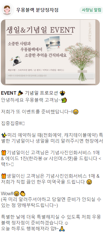 안녕하세요, 동글동글라이프의 동글엄마예요^^ 분당 정자동 카페거리에 너무 특별한날 꼭 챙겨 가고 싶은 식당이 생겨서 포스팅 해보아요.가정의 달 이벤트도 진행중이고 생일 예약하고 갔더