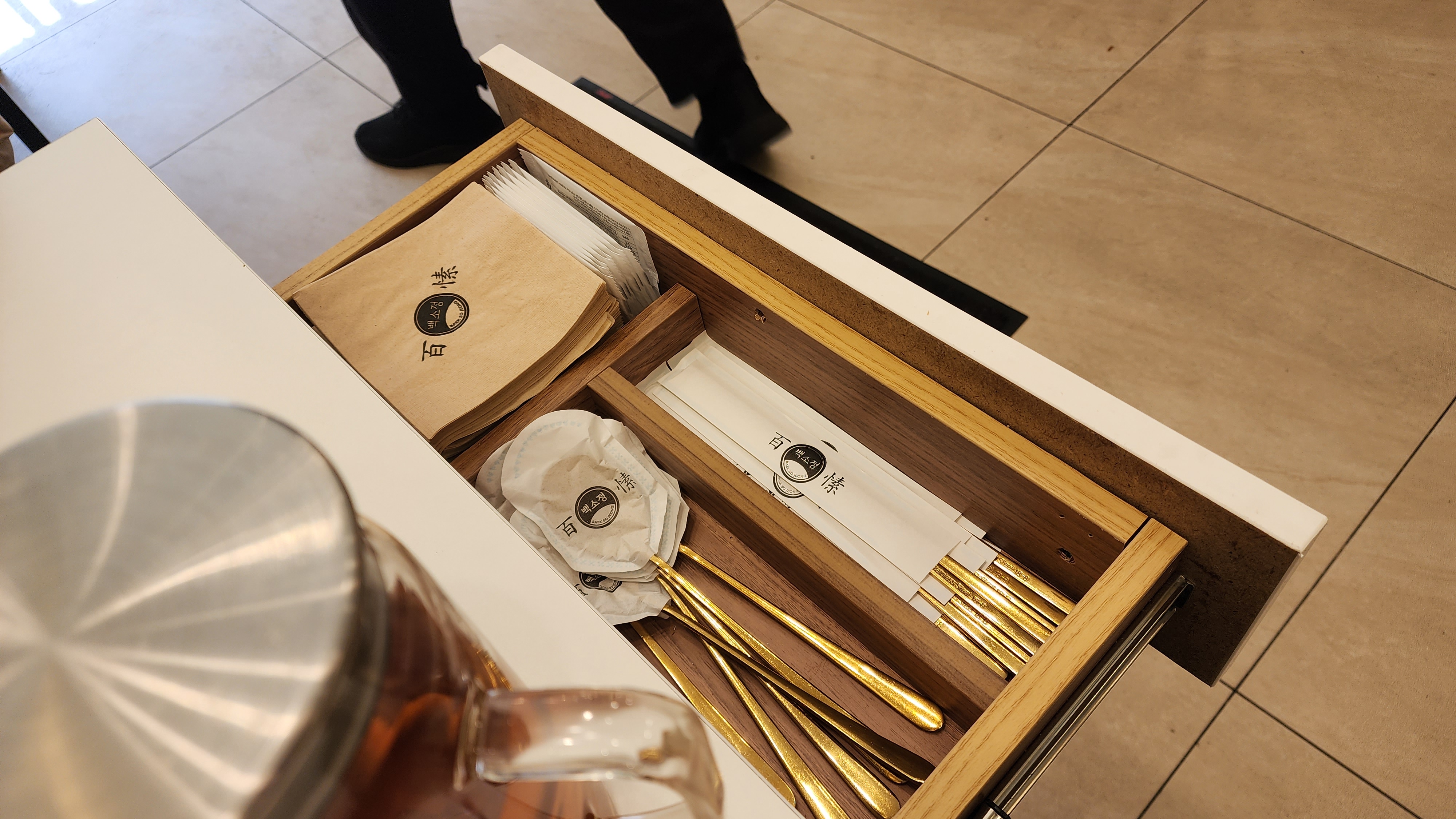 냅킨, 물티슈, 수저, 젓가락은 서랍에 들어있고